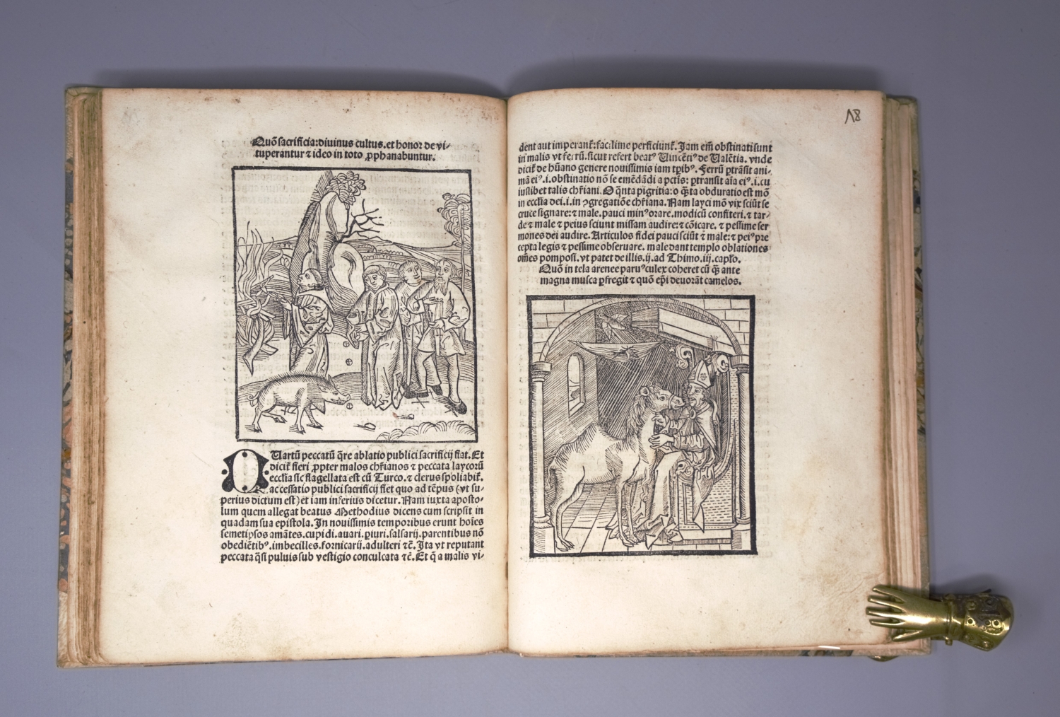 Methodius, (Pseudo-). (De revelatione. Mit Kommentar von Wolfgang Aytinger und herausgegeben von Sebastian Brant). 68 Bl. Mit Titelholzschnitt und 60 großen Textholzschnitten (5 wiederholende). 21,4 x 15,6 cm. Halbpergament des 19. Jahrhunderts. (Basel, Michael Furter, 1515).