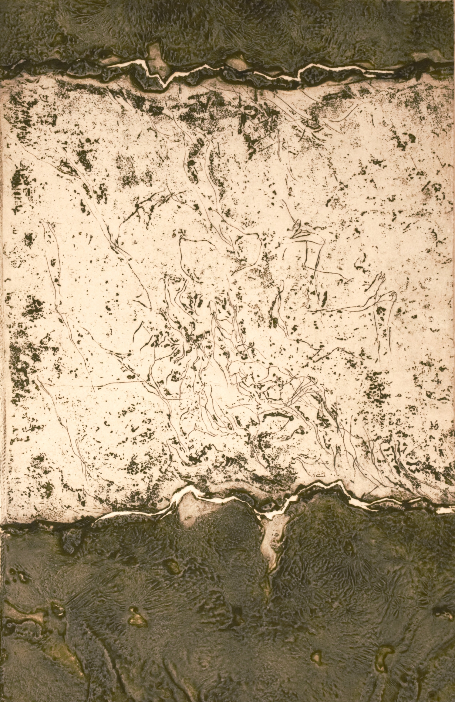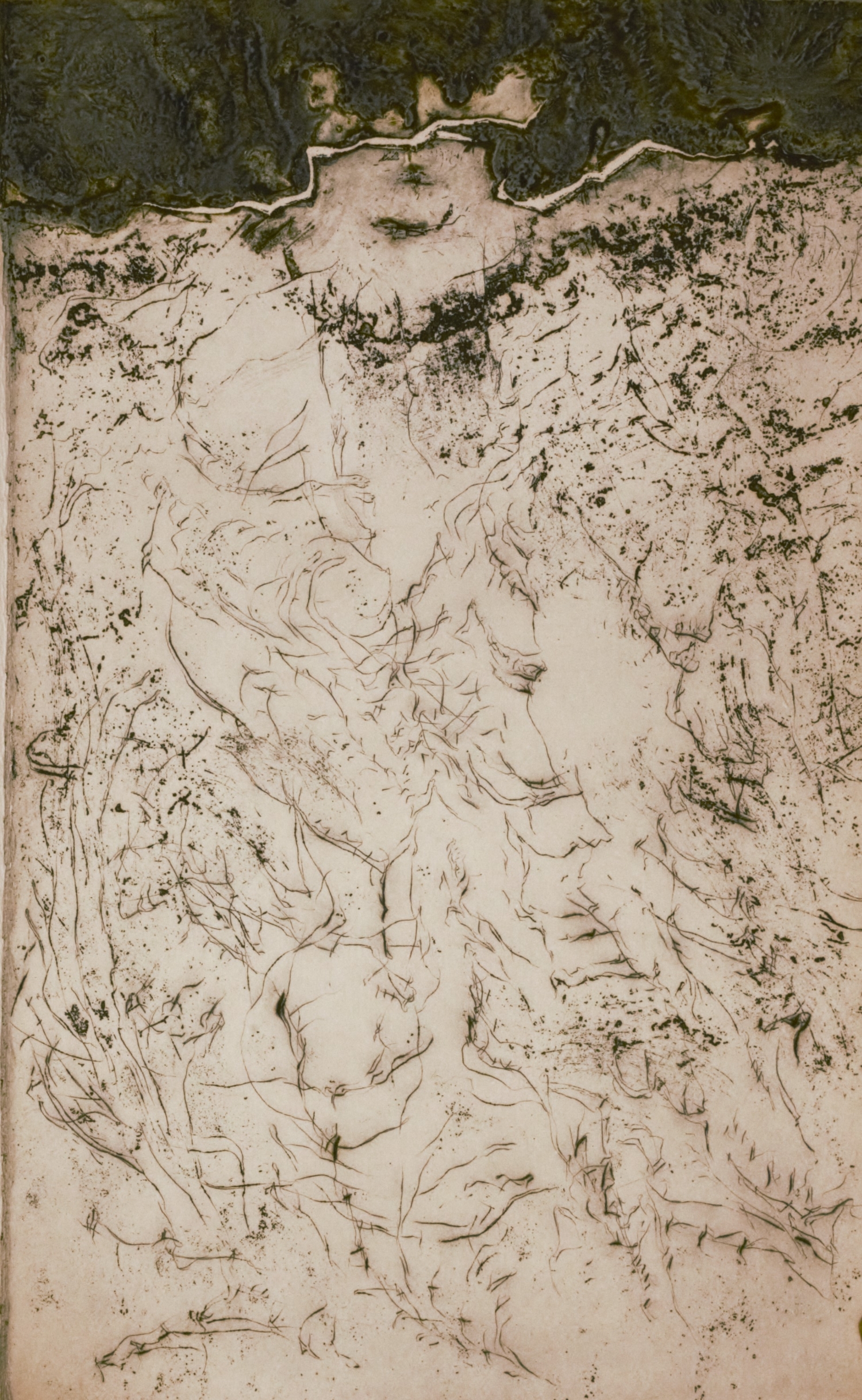 Arp, Hans. Vor dem Mosaik von Torcello (Gedicht). 25 S., 1 Bl. Mit radierter Titelillustration und 6 blattgroßen Originalgravuren von Rudolf Schoofs. 25 x 16,5 cm. Lose Bogen in OKart.-Umschlag. In OPappschuber. (Wülfrath, H. Heiderhoff, 1963).