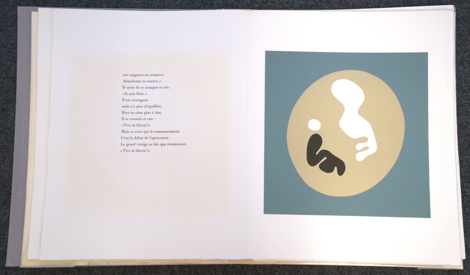 Arntz 250-269. Monod 524. Arp-Hagenbach 377. – Eines von 150 arabisch nummerierten Exemplaren (Gesamtauflage: 185 Ex.). Der prächtige fünffarbige Holzschnitt auf Vélin d’Auvergne von Arp signiert und nummeriert. Der Text und die übrigen Holzschnitte auf Velin "BFK Rives" mit dem Wasserzeichen des Verlegers. Enthält 17 Gedichte von Jean Arp, die meisten sind hier erstmals veröffentlicht. – Tadellos.