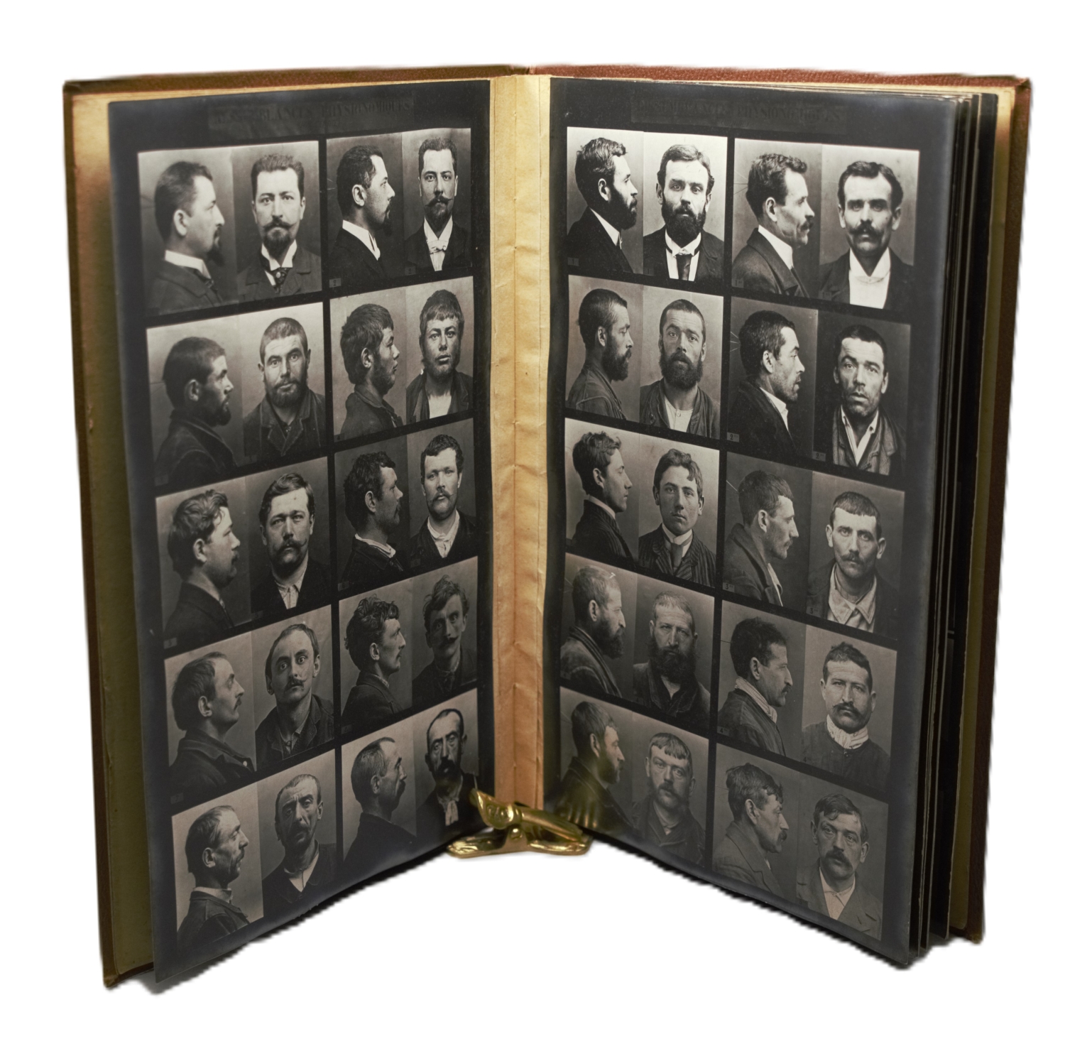 Vgl. Darmstaedter 798: "Alphonse Bertillon veröffentlicht seine anthropometrischen Versuche zur Feststellung der Identität von Personen für die Zwecke der Strafrechtspflege, auf Grund deren zuerst in Paris, dann in den Hauptstaaten Europas ein polizeilicher Erkennungsdienst organisiert wird, wozu er auch die Anlage von Verbrecheralbums anregt". – Das vorliegende Album versammelt exemplarische Bildtafeln zur physiognomischen und morphologischen Erfassung menschlicher Merkmale, wie sie Alphonse Bertillon (1853-1914) im Rahmen seines kriminalanthropometrischen Identifikationssystems - der sogenannten Bertillonage - entwickelte. Das Verfahren basierte auf der Annahme, dass bestimmte Körpermaße individuell und konstant seien, und diente der Wiedererkennung rückfälliger Straftäter. Es gilt als Vorläufer moderner biometrischer Verfahren und beeinflusste die kriminalistische Erkennungsarbeit, zum Beispiel durch die bis heute übliche standardisierte Täterfotografie.