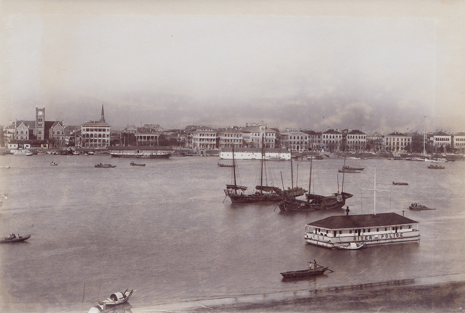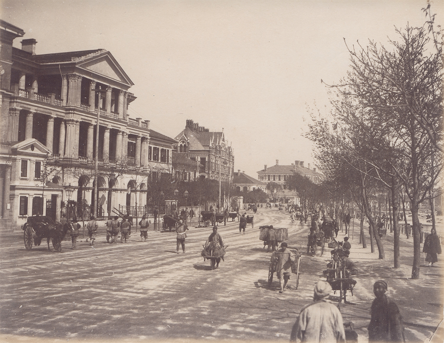 Photographers: William Saunders (1832-1892), Henry Cammidge (active ca. 1880-1910), and unknown. Views of Shanghai. 1870s-1900s. 9 albumen prints. Each between 19,5 x 25,5 cm and 22 x 28 cm. Some annotated in the negative or in pencil on the verso.