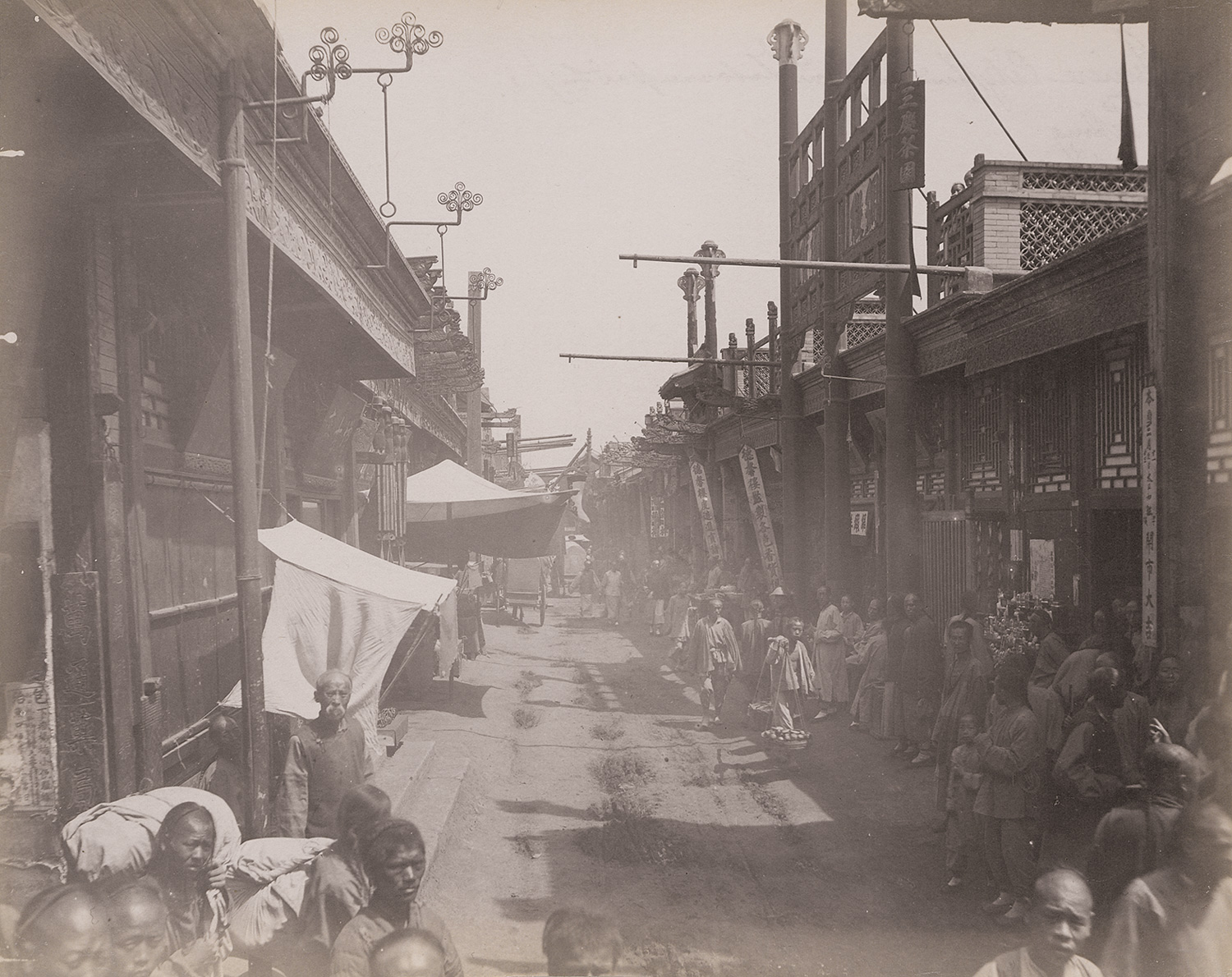 Photographer unknown. Views of Beijing and Shanghai. 1870s-1880s. 15 albumen prints, mounted to board. Each ca. 21,5 x 27 cm (32,5 x 44 cm). Captioned in blue ink below the image on the mount.