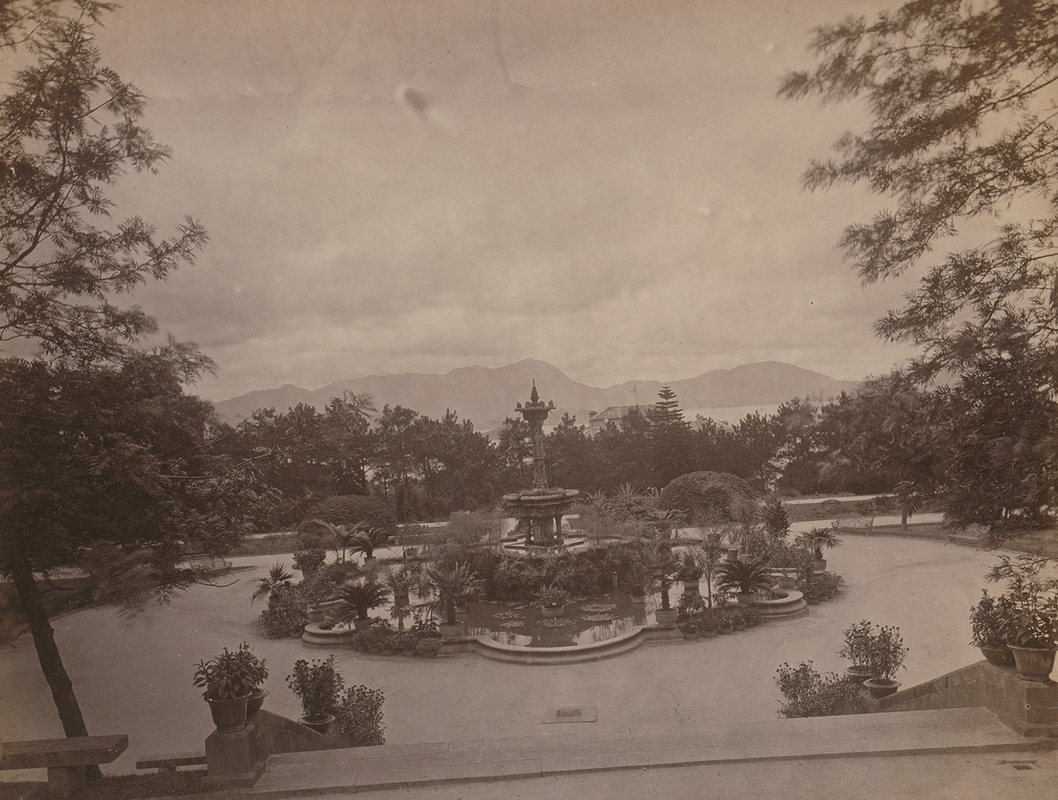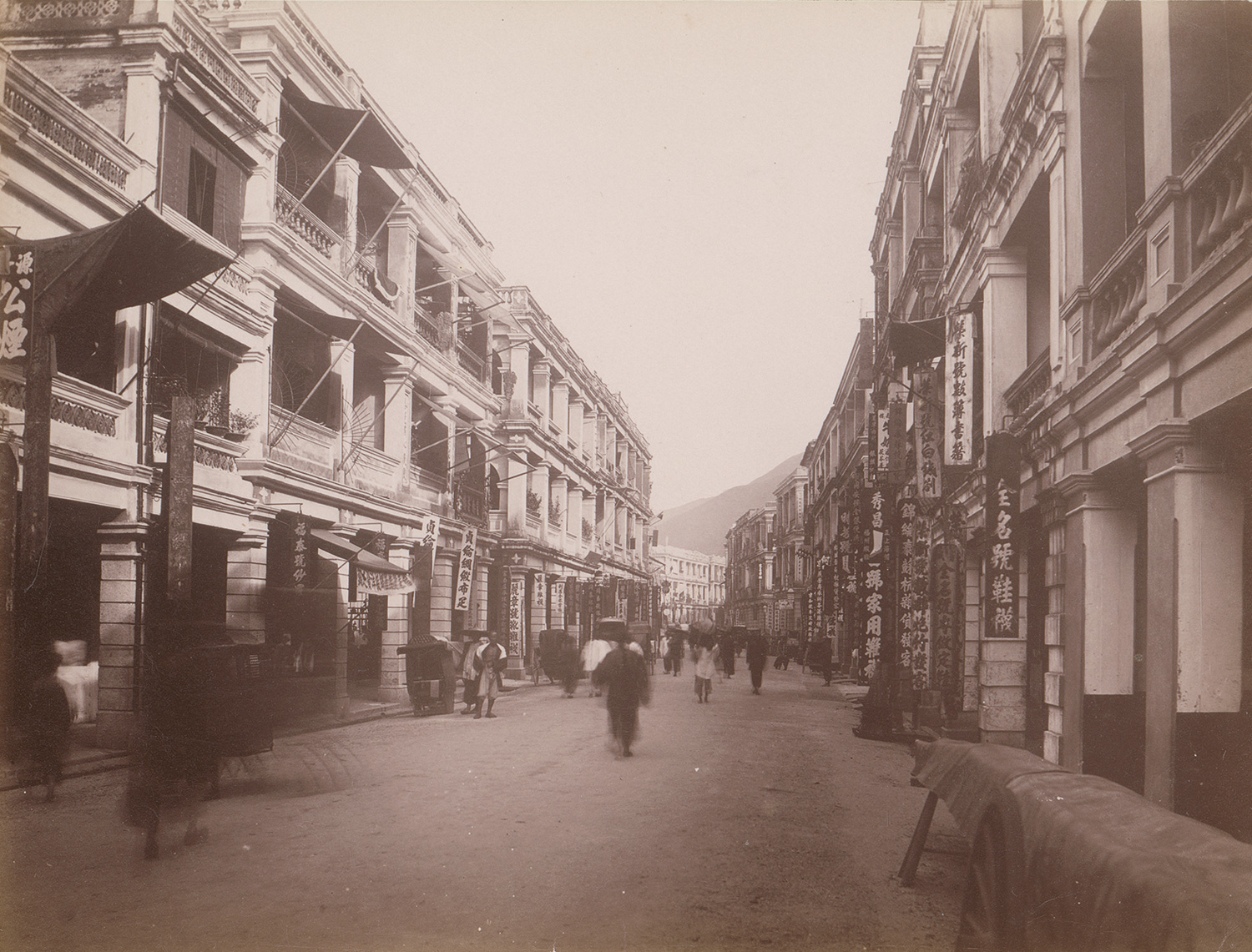 This remarkable group of photographs captures main sites of colonial-era Hong Kong in the late 19th century, including Victoria Harbour, Queen’s Road Central, St. John’s Cathedral, the Zoological and Botanical Gardens, as well as the iconic stone steps of Pottinger Street with sedan chair and rickshaw bearers. Finely rendered in tone and detail, the prints exemplify the technical and compositional refinement of Lai Afong and Pun Lun - two of the most important studios active in Hong Kong at the time. – Some prints slightly faded, some with handling creases and small tears, otherwise all in good to very good condition.