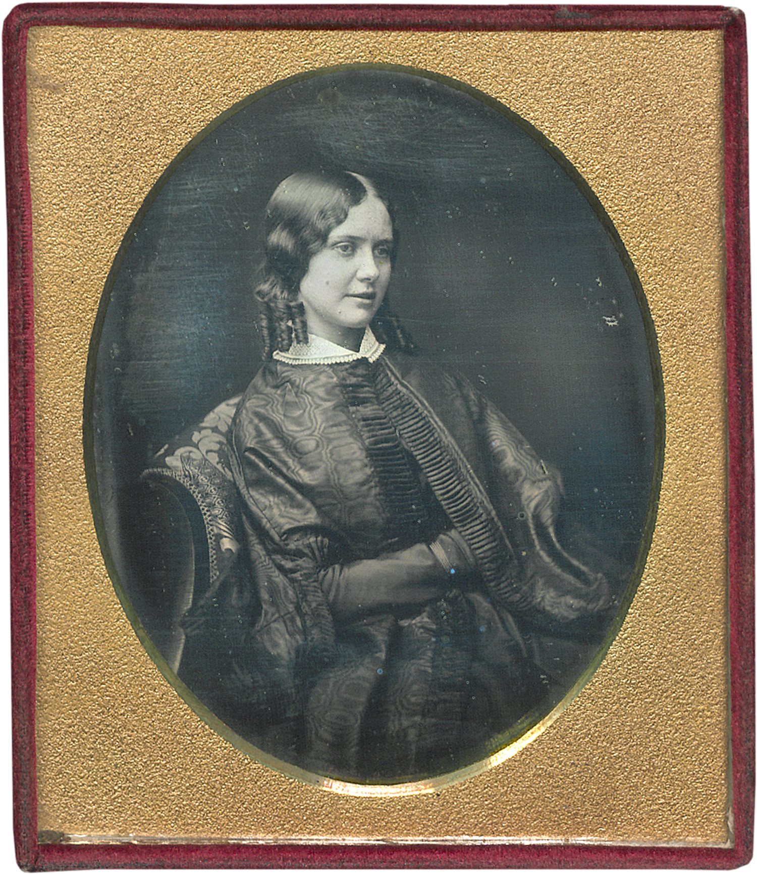 Photographer: Albert Sands Southworth (1811-1894) and Josiah Johnson Hawes (1808-1901). Portrait of a woman. Mid-1850s. Quarter plate, slightly tinted daguerreotype in leather case. 9 x 7 cm (11,5 x 10 cm).