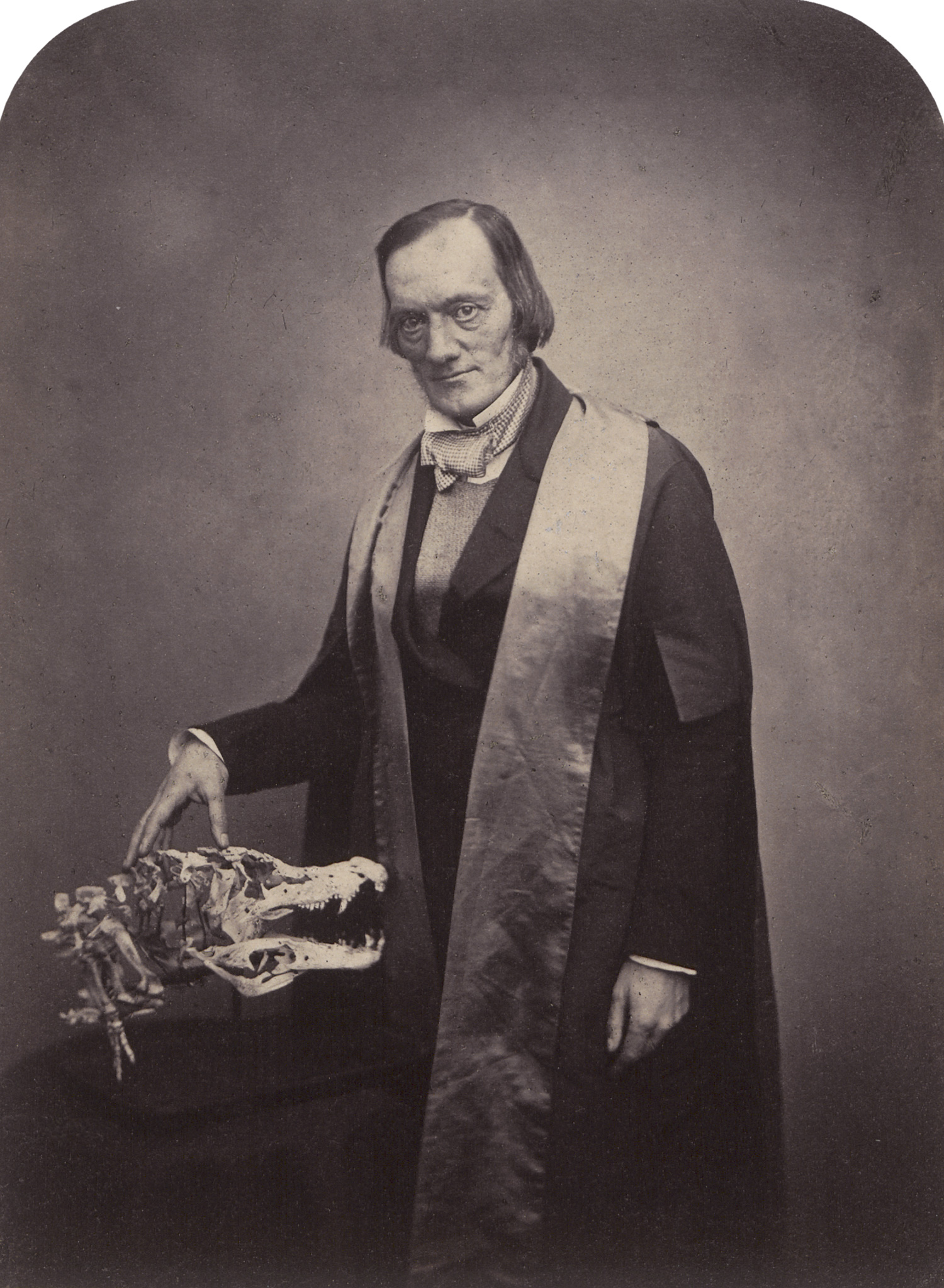 This group of early photographic portraits by the London studio Maull & Polyblank features prominent figures of mid-Victorian public life. Among them are Sir Richard Owen, the pioneering comparative anatomist and founder of the Natural History Museum in London, shown with a fossil specimen; Sir William Sterndale Bennett, influential composer and Principal of the Royal Academy of Music; Lord Stanley, later the 15th Earl of Derby and a three-time British Foreign Secretary; and Charles Kean, celebrated Shakespearean actor and theater manager. Taken between 1857-1864, these portraits exemplify the studio’s ambition to create a visual pantheon of British cultural and political leadership. – Some minor scuff-marks and surface irregularities, otherwise very strong tonal prints in near excellent condition.