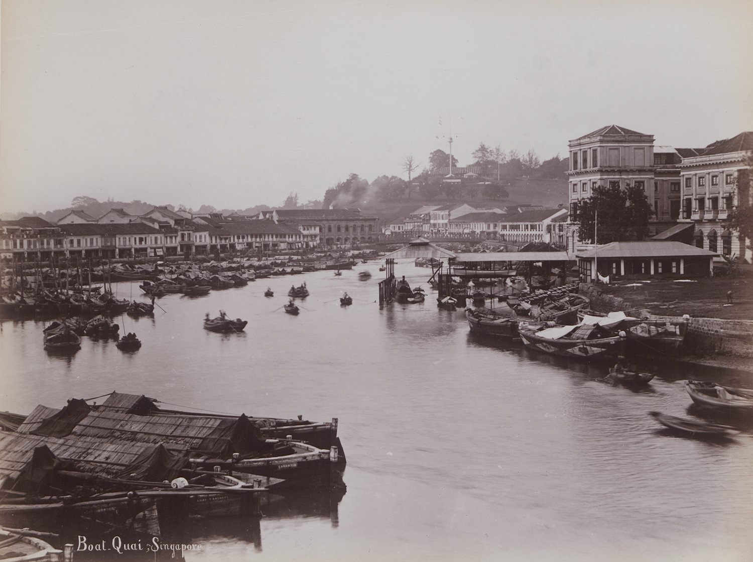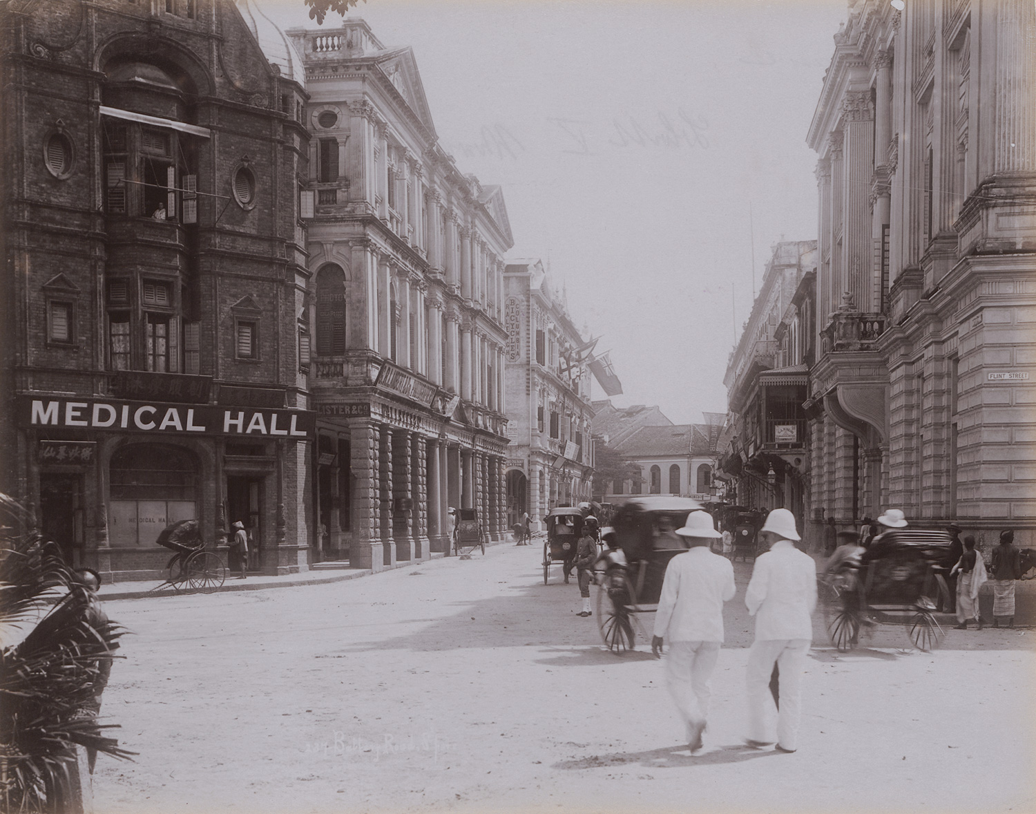 Photographers: G. R. Lambert & Co. (active ca. 1880-1910) and unknown. Views of Singapore. 1880s-1890s. 20 collodion and albumen prints, mounted on boards. Each ca. 21,5 x 27 cm (27 x 34 cm) or reverse. Most with the photographer’s studio stamp embossed in the lower left corner, some with handwritten titles below the image on the mount.