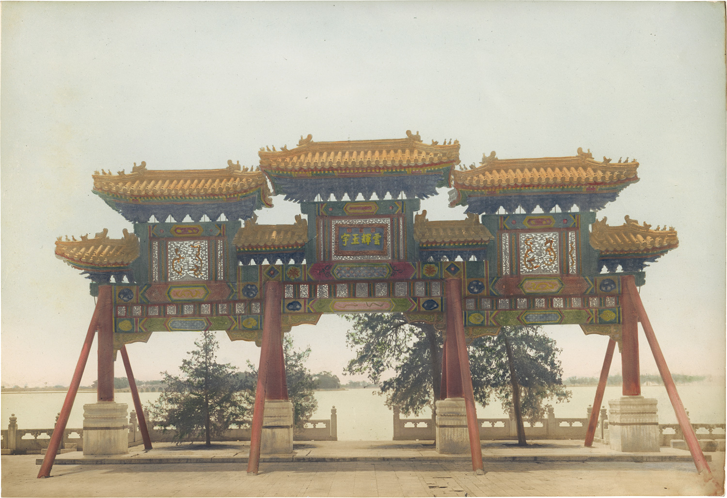 Photographer: Mei Li Photo Studio, Peking; Kang-Sing Chiao, Peking. Views of the Summer Palace, Peking, China. 1900-1920. 5 vintage hand-colored gelatin silver prints. Circa 25 x 38 cm and reverse. 4 with photographer's studio stamp and some annotated in pencil on the verso.