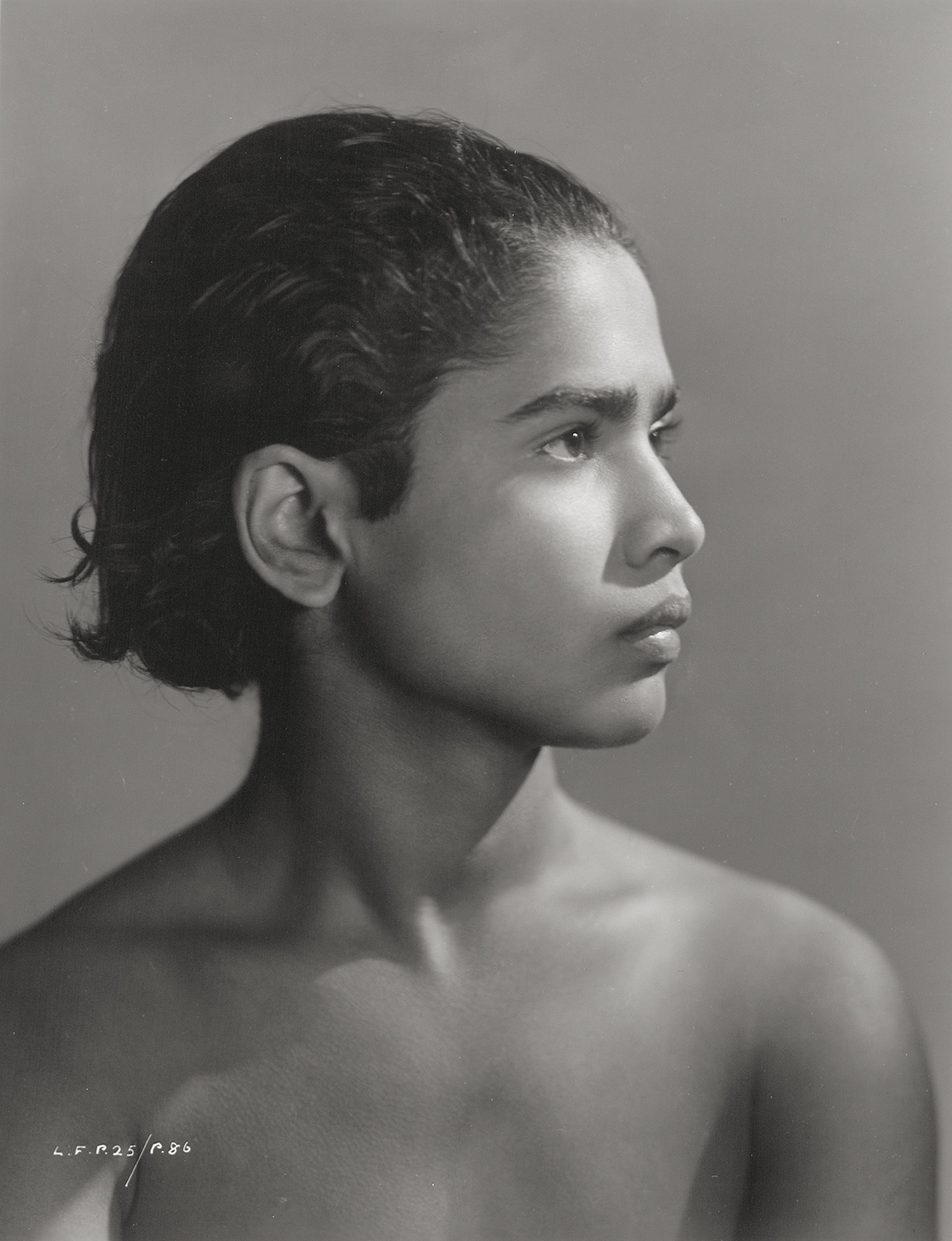 Photographer unknown. The actor Sabu in his role as Prince Azim in the film The Drum. 1938. Vintage ferrotyped gelatin silver print. 25,3 x 20 cm. Number in the negative in lower left; archive stamps and annotated in pencil on the verso.