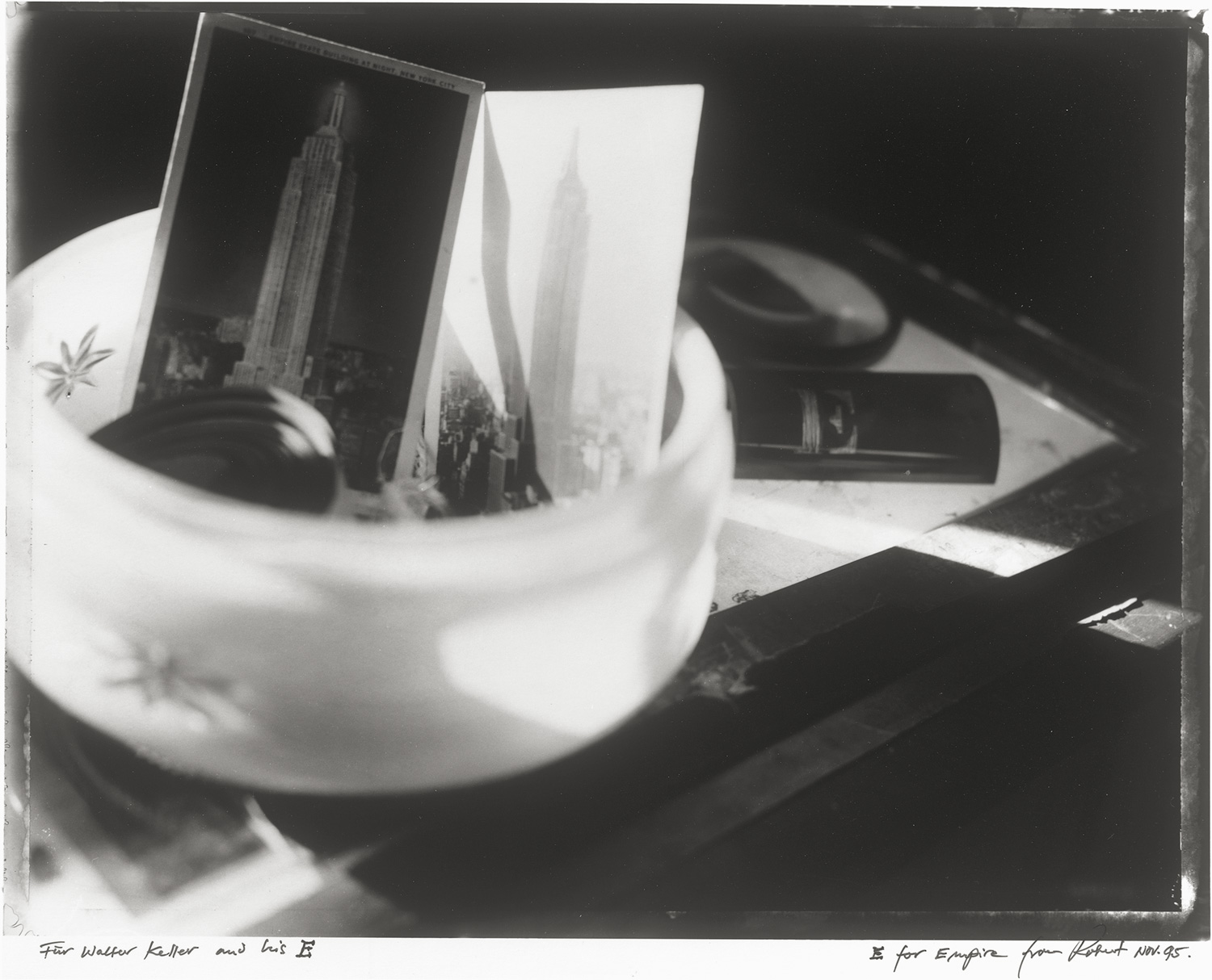 E for Empire. 1995. Gelatin silver print. 27,8 x 35,4 cm. Signed, titled and dated on recto below the image; with a wriiten dedication "For Walter Keller and his E".
