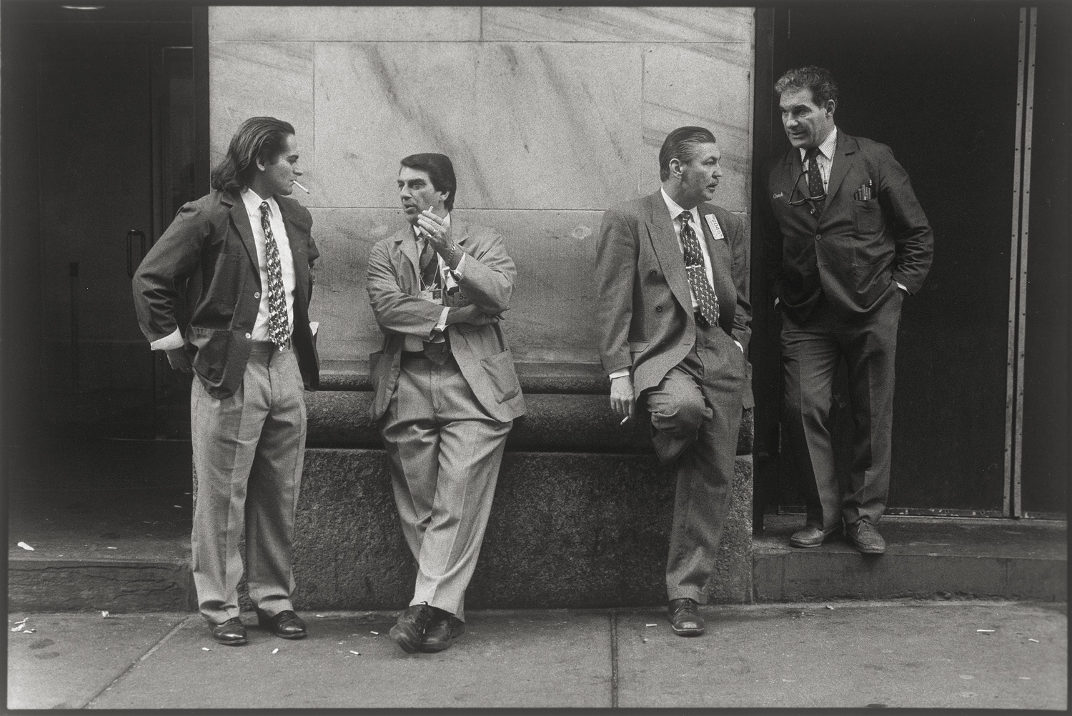 Wall Street Brokers Wearing Armani Suits. 1994. Gelatin silver print on chamois paper. 24 x 36 cm (30 x 40 cm). Signed, titled and dated by the photographer in pencil on the verso.
