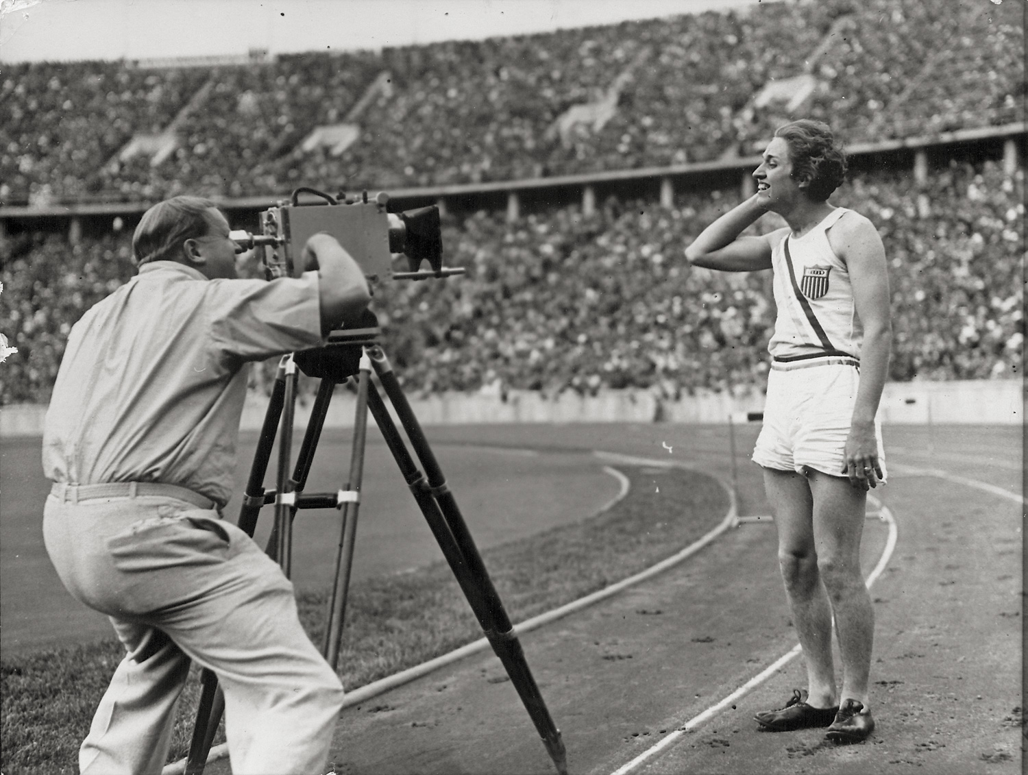 XI. Olympiade. Berlin 1936. 38 vintage gelatin silver press prints. Circa 18 x 24 cm. Each with typed press text affixed to lower edge.