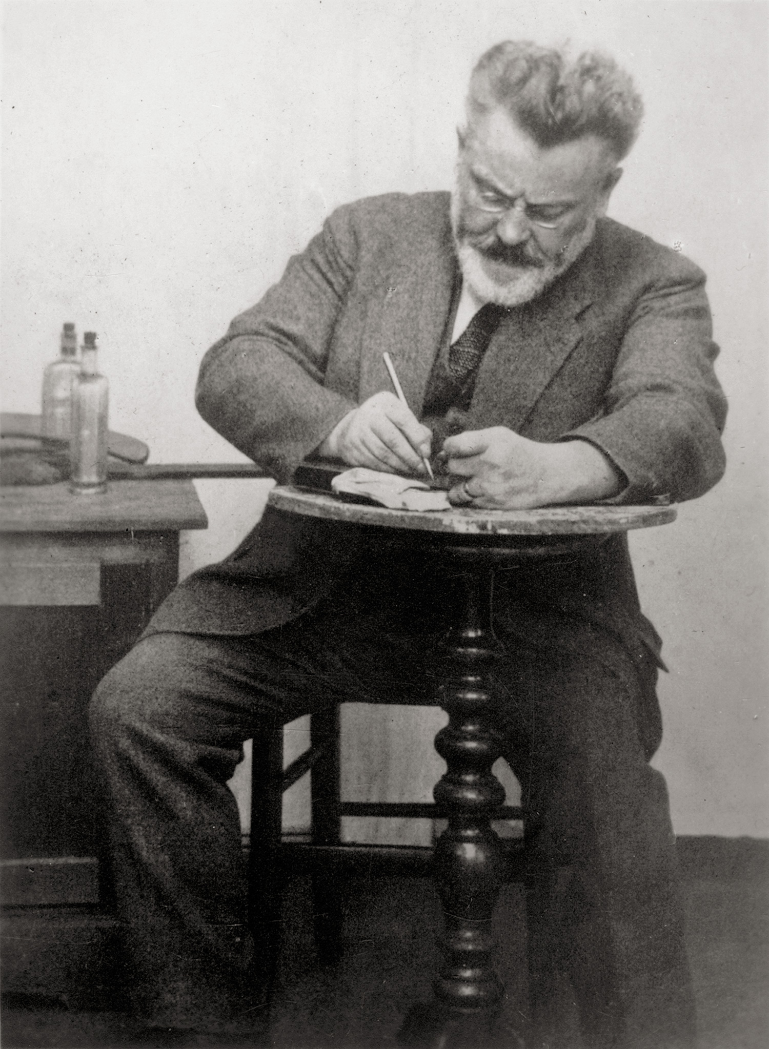 Photographer: Hugo Erfurth (1 photo postcard) and unknown. Portraits of the painter Max Slevogt. Circa 1918. 15 vintage gelatin silver prints. Between circa 13,5 x 9 cm, 16 x 12 cm and 19 x 16 cm. Most mounted to card.
