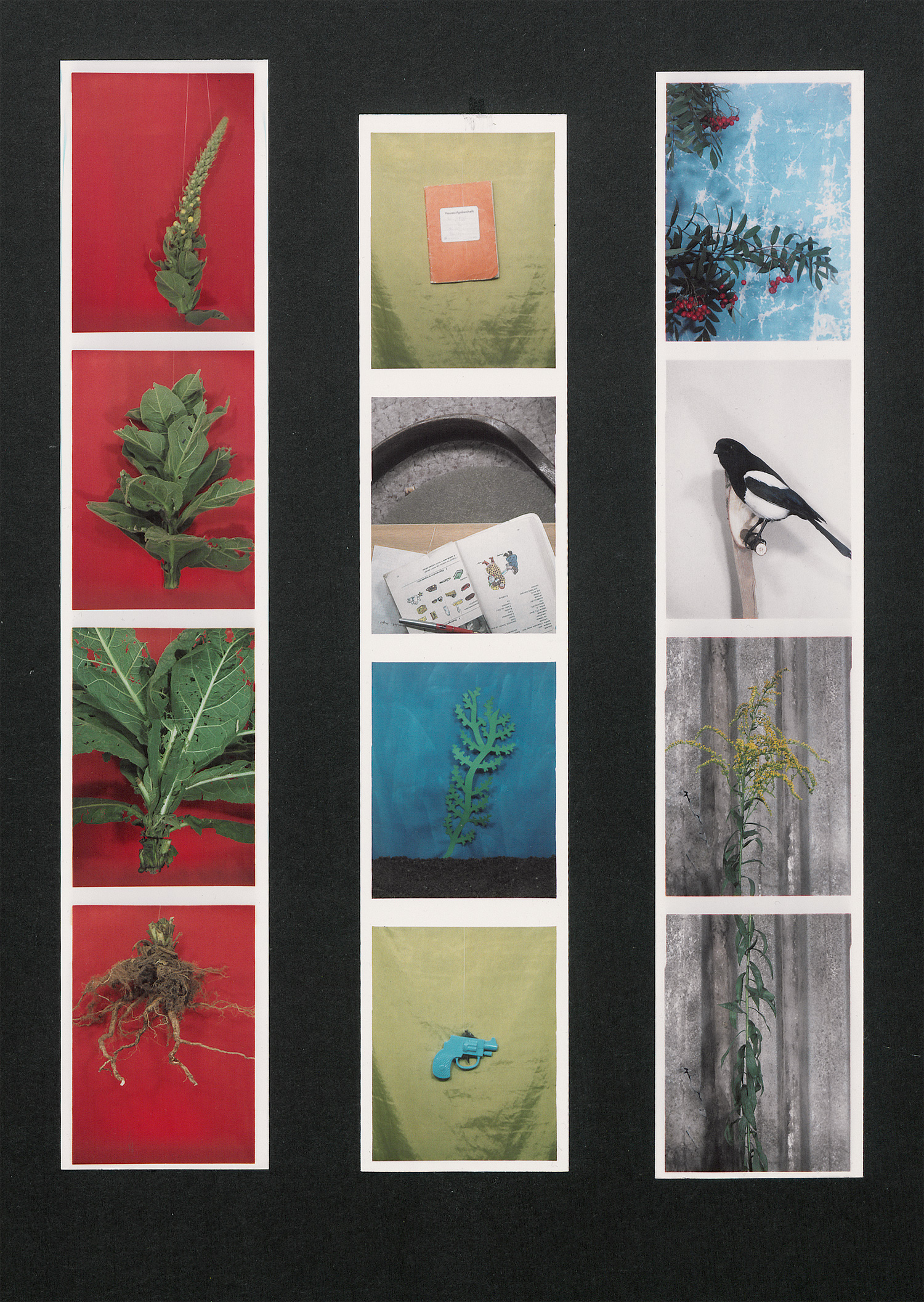 Jan Wenzel has been taking photographs in photo booths since the early 1990s. The mechanics of the machine create a photographic event that lasts exactly 28 seconds. The tableaux, often consisting of several photo strips placed together, show imaginary spaces created by the rapid change between the individual shots. They are the result of a specific choreography with which objects were held in the machine. The dynamics of the images arise from minimal differences in how they connect. Referring to these tableaux works, Wenzel stated: “Each of my photos is the result of calculation, time constraints, self-control, and chance". – One strip with crease in lower portion, otherwise in very good condition.