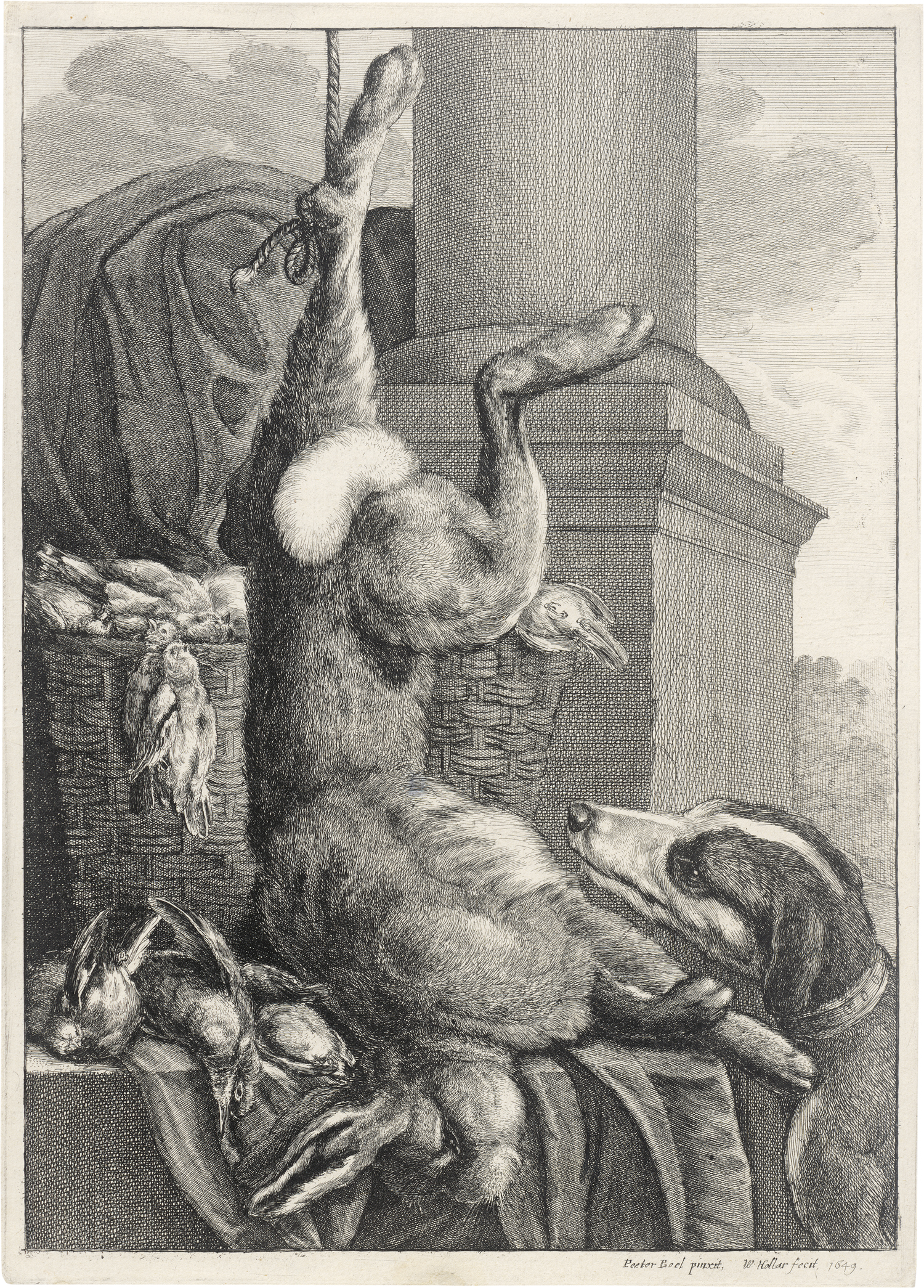 Der tote Hase. Radierung nach Pieter Boel. 27 x 19,2 cm. 1649. Parthey 2058, Turner (New Hollstein) 1068 I (von III). Wz. Schellenkappe mit drei Kugeln.
