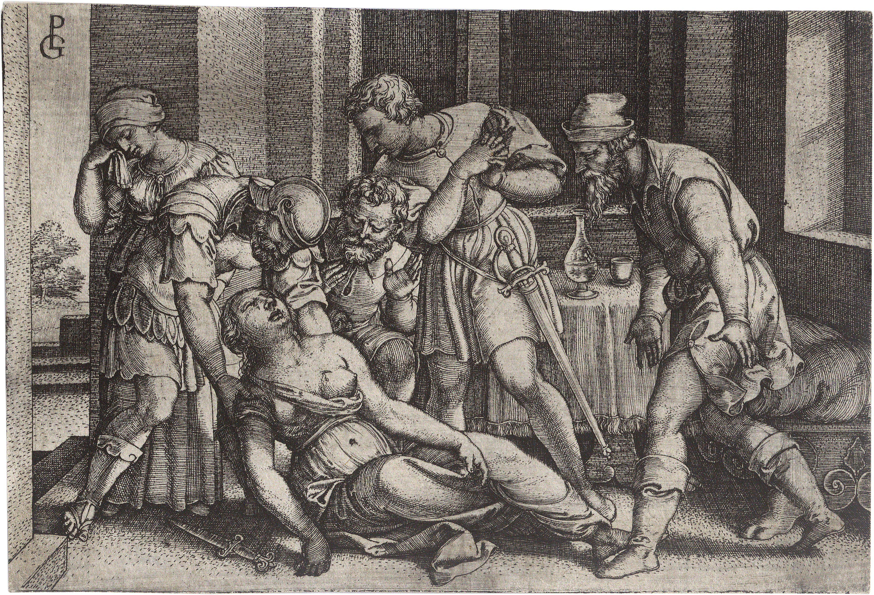 Vier Szenen aus der frühen römischen Geschichte. 4 Kupferstiche. Je ca. 7,8 x 11,7 cm. B. 79-81, Landau 86-89, Hollstein 130-133.