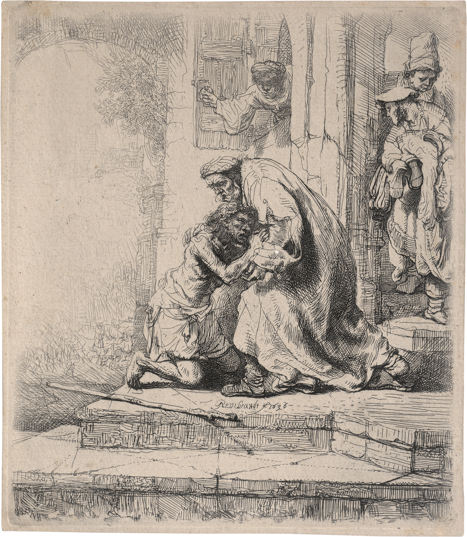 Die Rückkehr des verlorenen Sohnes. Radierung. 15,6 x 13,5 cm. 1636. B. 91, White/Boon (Hollstein) 91, Nowell-Usticke 91 IV, Hinterding/Rutgers 159 I-II (von III).