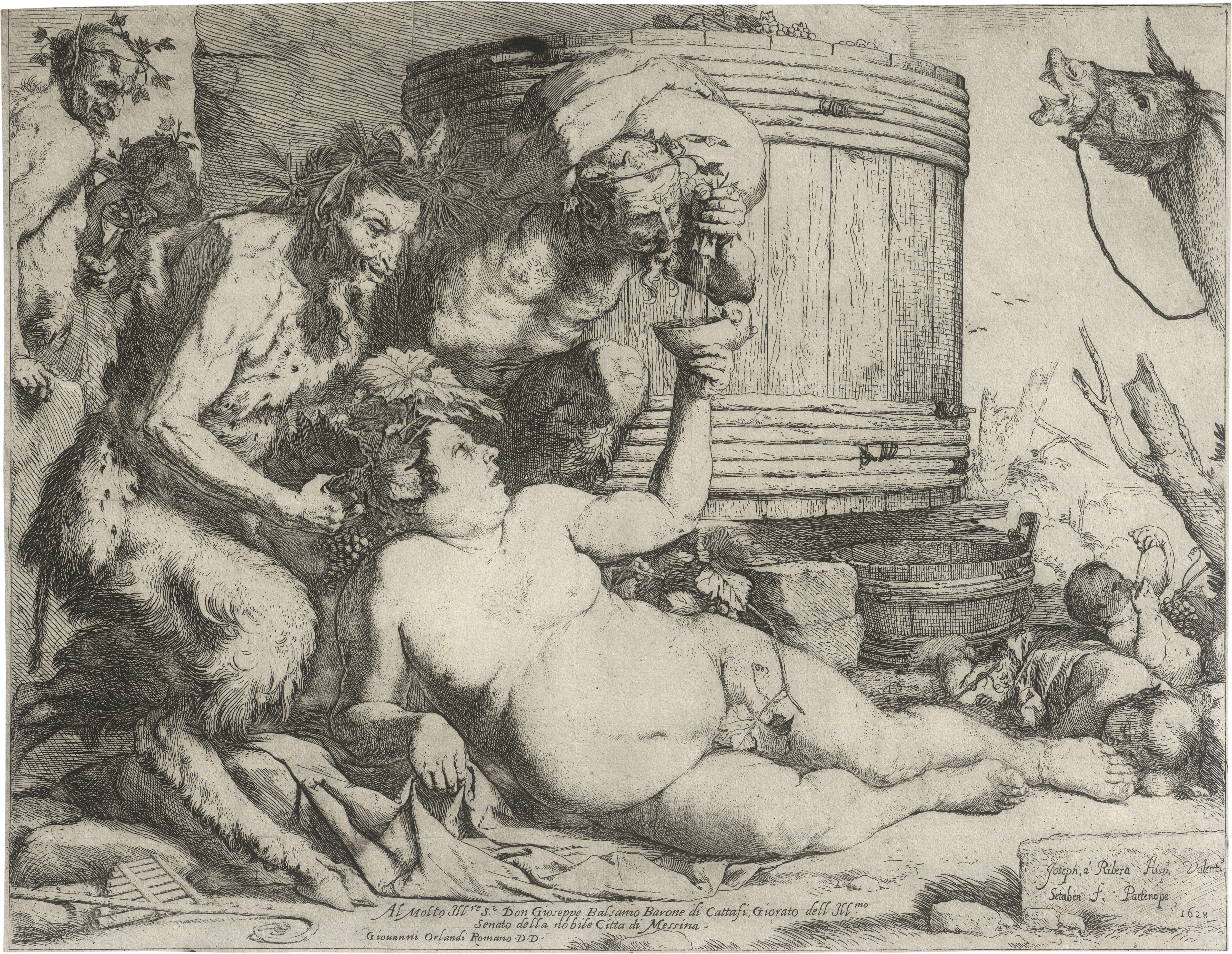 Der trunkene Silen. Radierung. 26,7 x 34,5 cm. 1628. B. 13 II, Brown 14 II (von III).