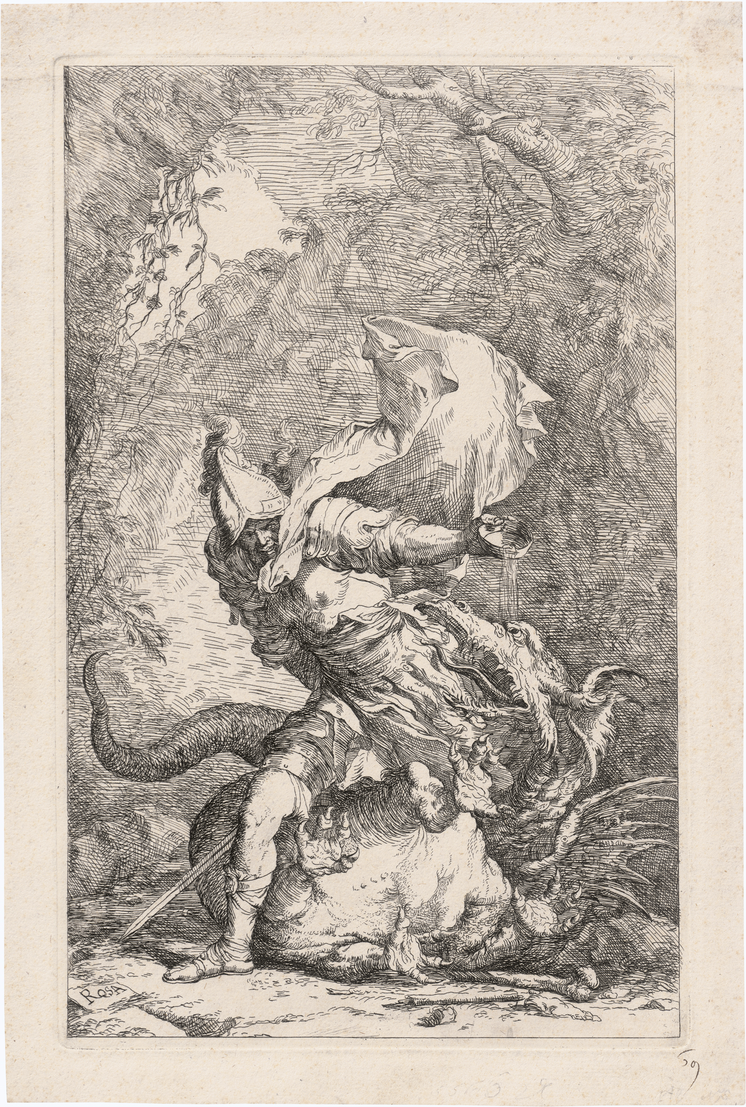 Jason und der Drache. Radierung. 33,8 x 21,5 cm. B. 18, Bozzolato 88, Wallace 118. Wz. Fleurs-de-lis im Doppelkreis.
