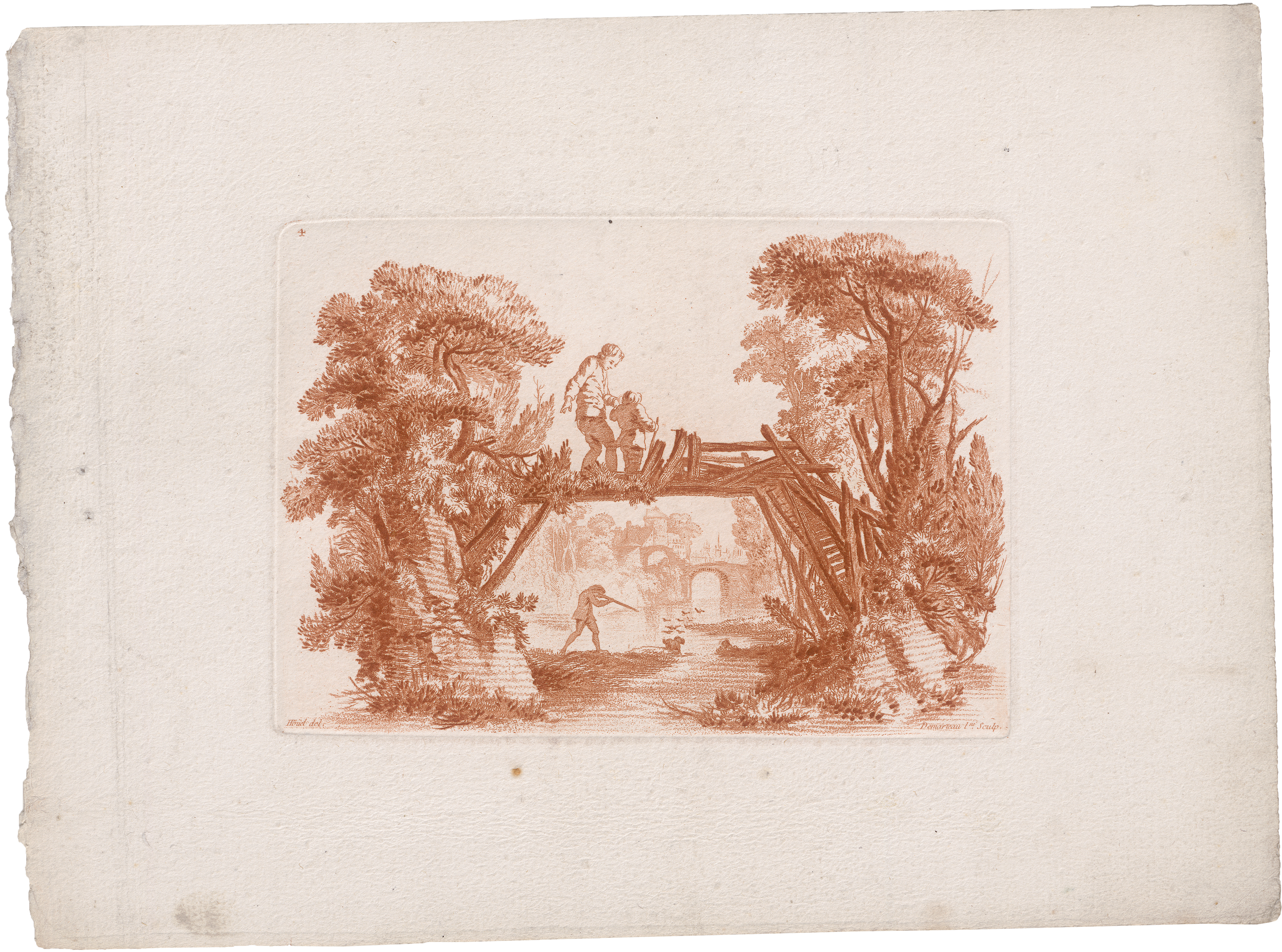 Suite de Paysage. 6 Radierungen mit Crayonmanier in Rot nach Jean-Pierre-Louis-Laurent Houël. Je ca. 12 x 17,2 cm. IFF 48. Wz. Schriftzug "Auvergne".