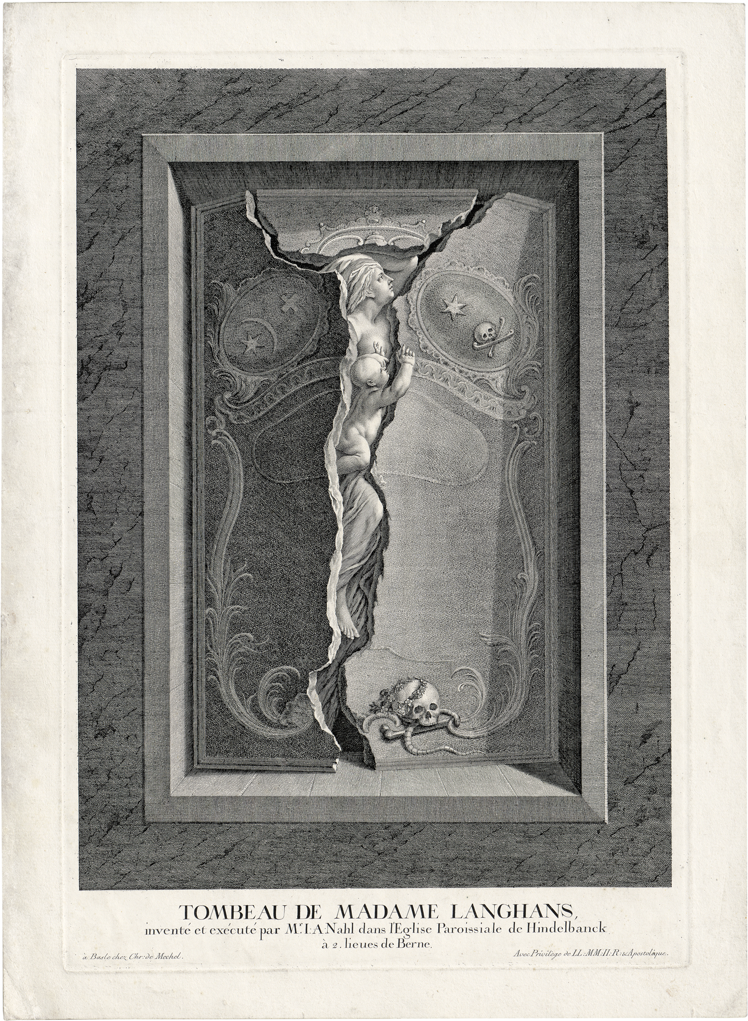 Tombeau de Madame Langhans. Radierung nach Johann August Nahl. 339,7 x 27 cm. (1786). Nagler 14, Wüthrich 38.