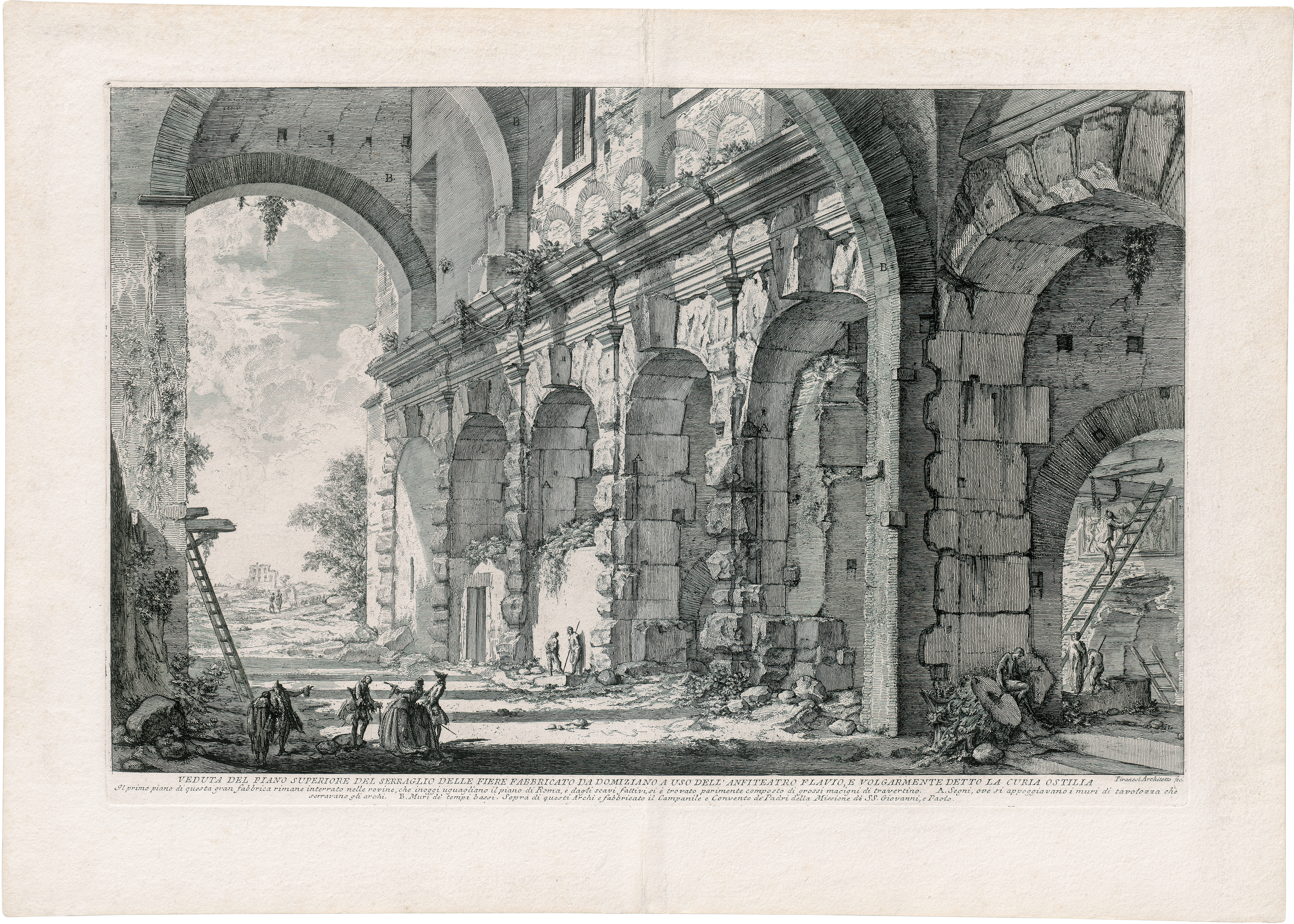 Veduta del Piano superiore del Serraglio delle Fiere [...] detto la Curia Ostilia. Radierung. 40,5 x 60,9 cm. (1757). Hind 43 vor II (von VI). Wz. Lilie im Kreis.