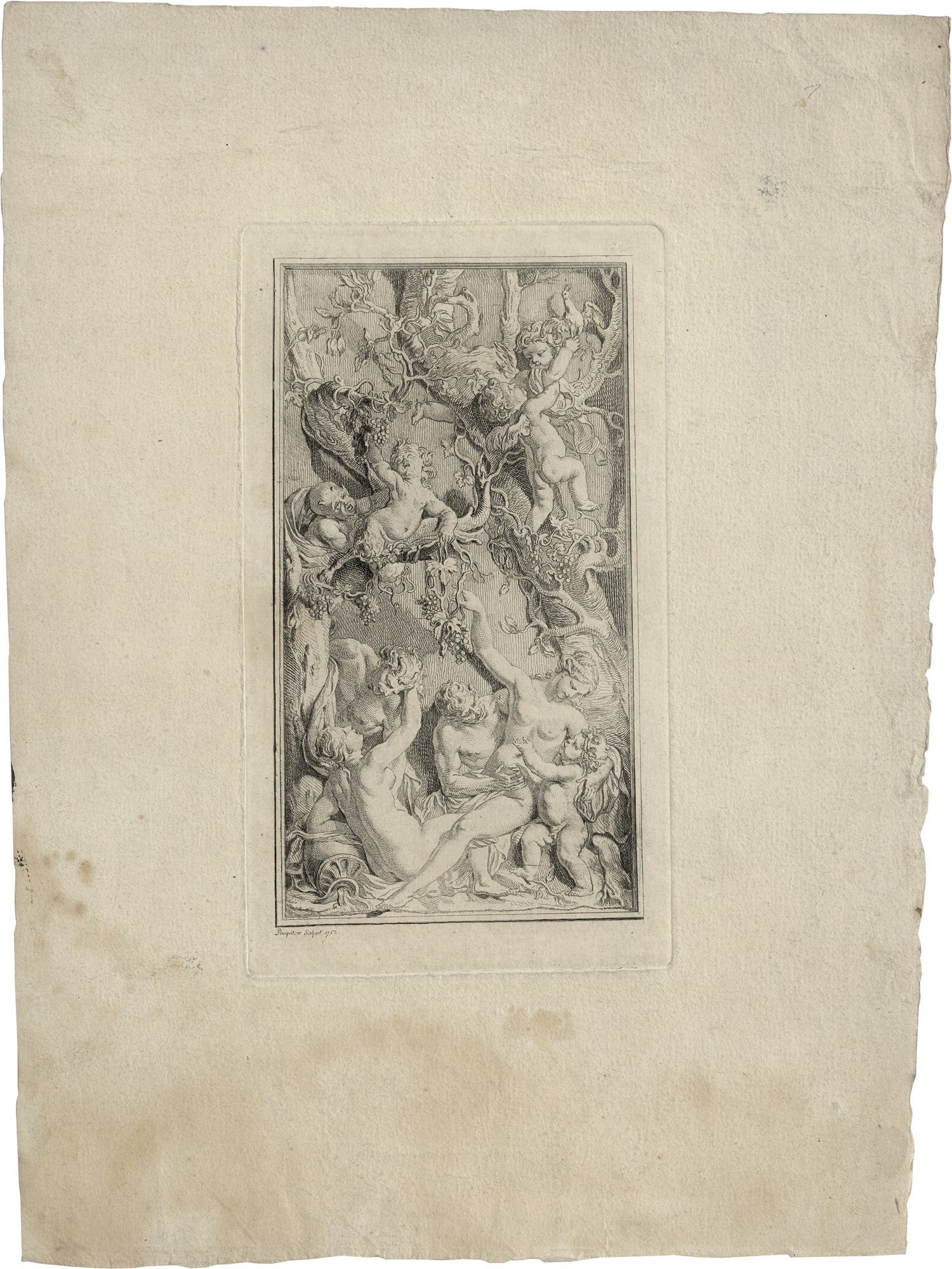Madame de Pompadour dilettierte als Radiererin und schuf einige wenige und dabei seltene Radierungen, die, so Thieme/Becker vermutlich sämtlich von Nicholas Cochin oder aber François Boucher überarbeitet wurden. Ganz ausgezeichnete Drucke mit breitem Rand, teils mit dem vollen Schöpfrand. Dieser vor allem von verso leicht durchscheinend fleckig und altersspurig, weitere Gebrauchsspuren, sonst einheitlich und gut erhalten.