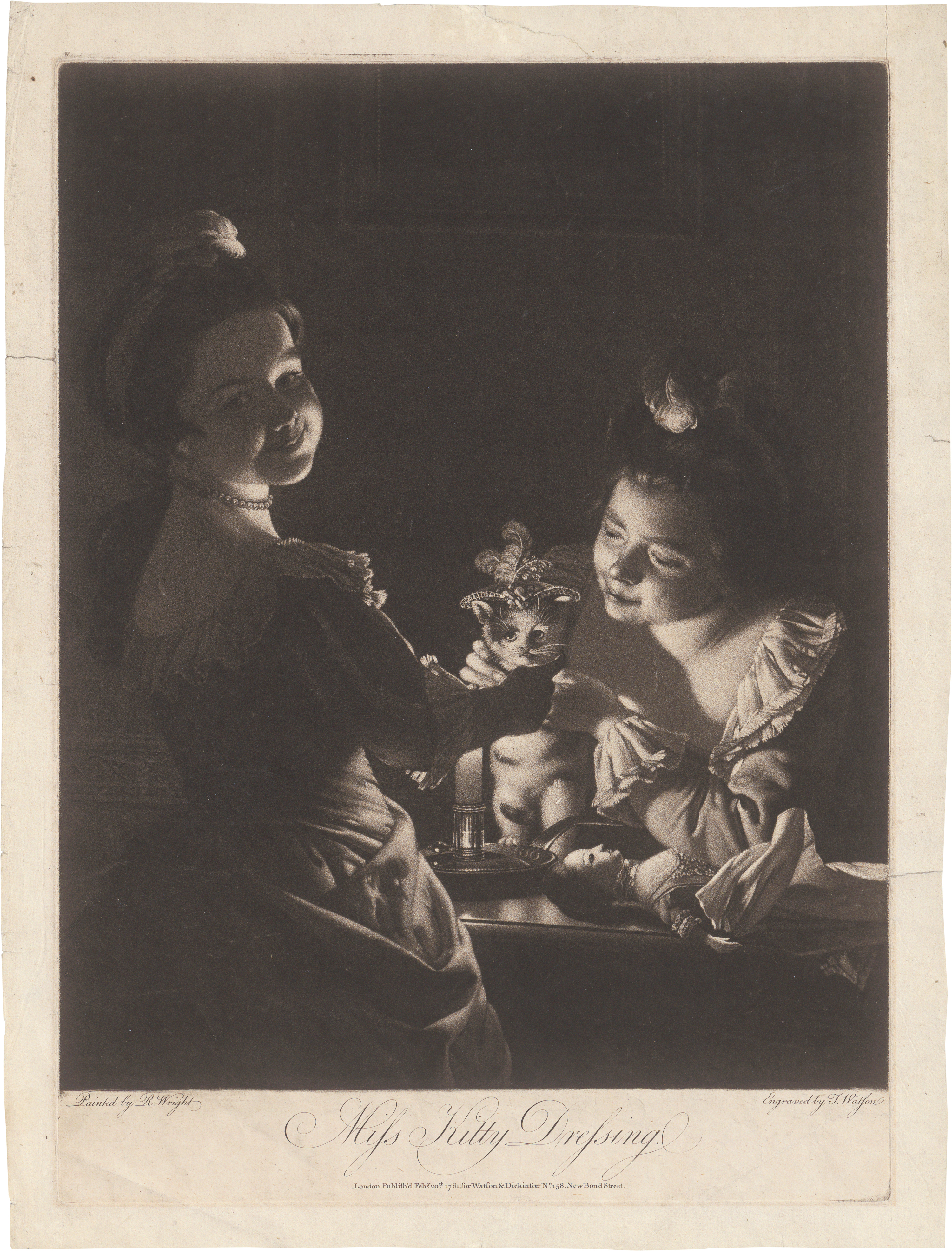 Miss Kitty Dressing. Schabkunstblatt nach Joseph Wright of Derby. 45,5 x 33 cm. 1781. Goodwin 65 II.