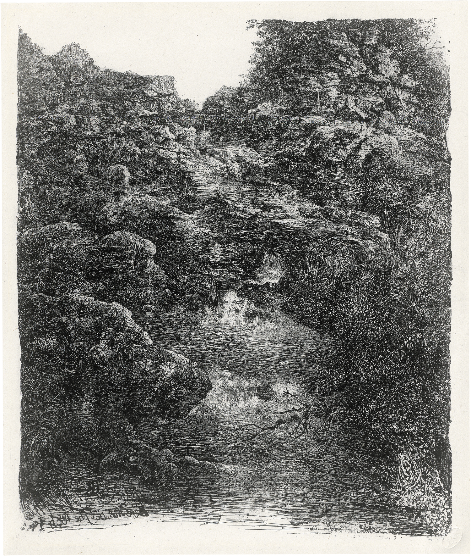 Le gave (Der Sturzbach). Lithographie auf gewalztem China. 37 x 31,2 cm. 1884. Van Gelder 153.