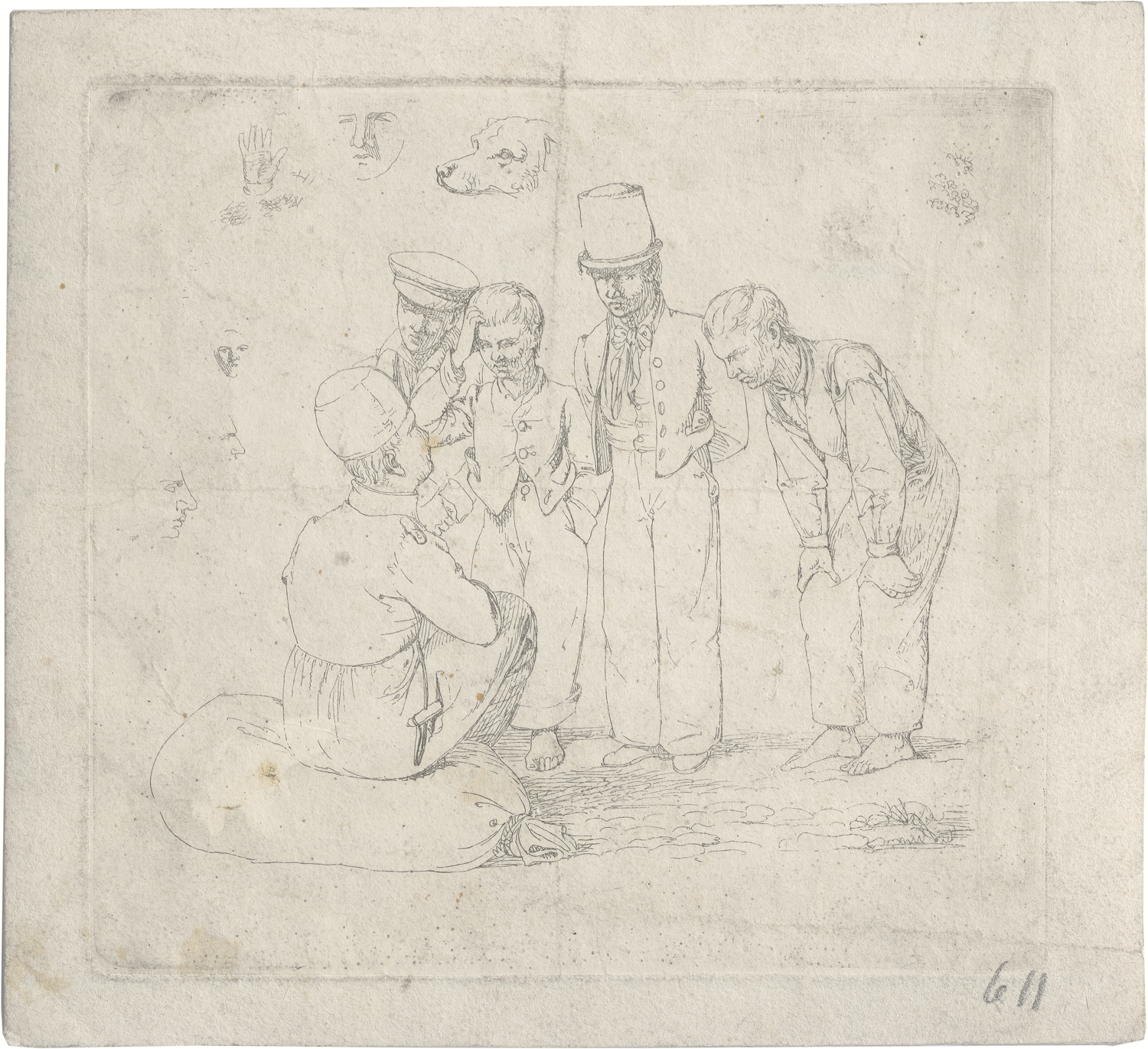 Ein russischer Matrose auf dem Zolllagerhaus. Radierung. 11,3 x 12,2 cm. (1827). Hannover E2.