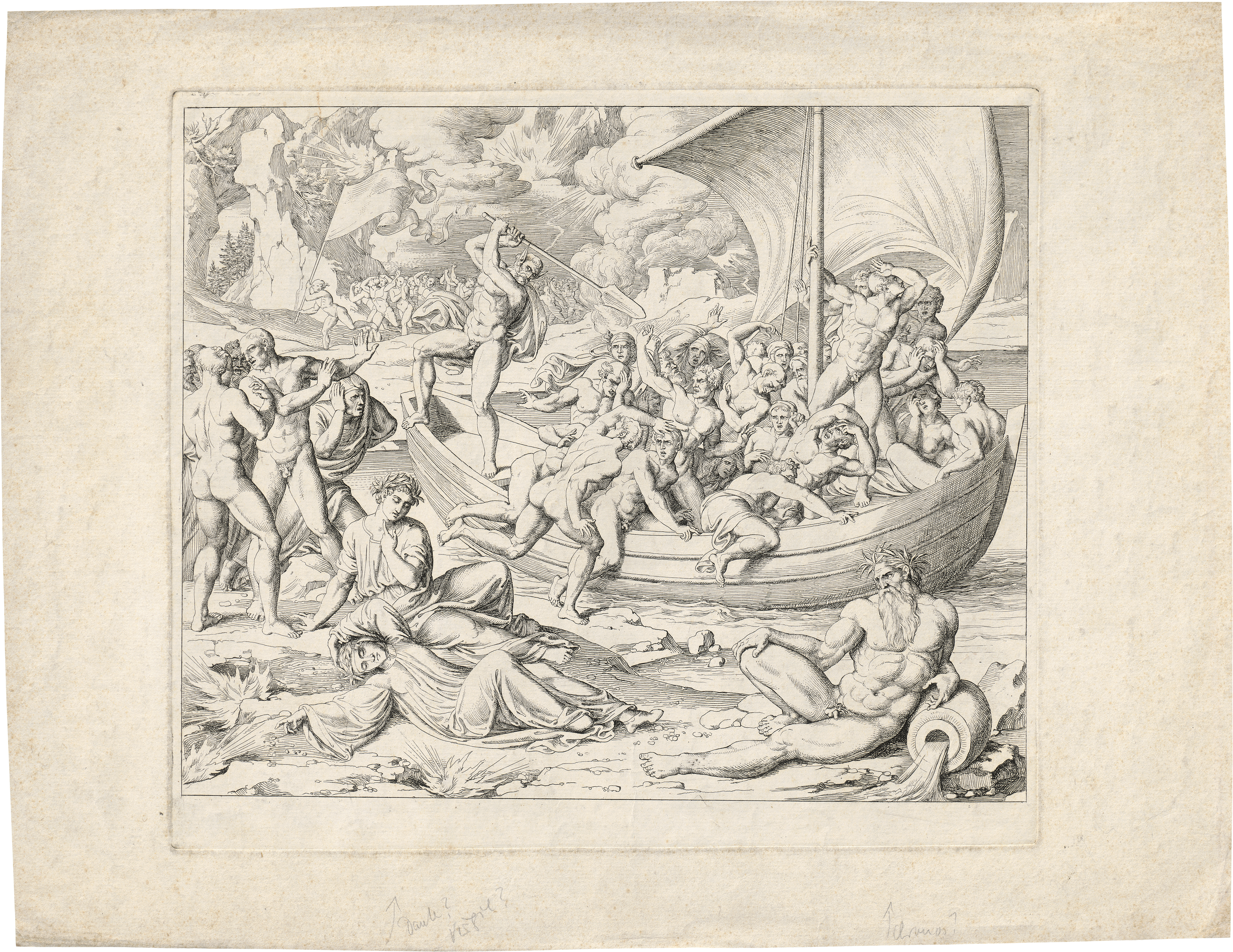 Charons Barke mit Seelen, die den Styx überqueren. Radierung. 32,9 x 37,7 cm. 1807/08. Andresen 22, Nagler 2, Carey/Griffiths: German Printmaking in the Age of Goethe, London 1994, Nr. 102, mit Abb.