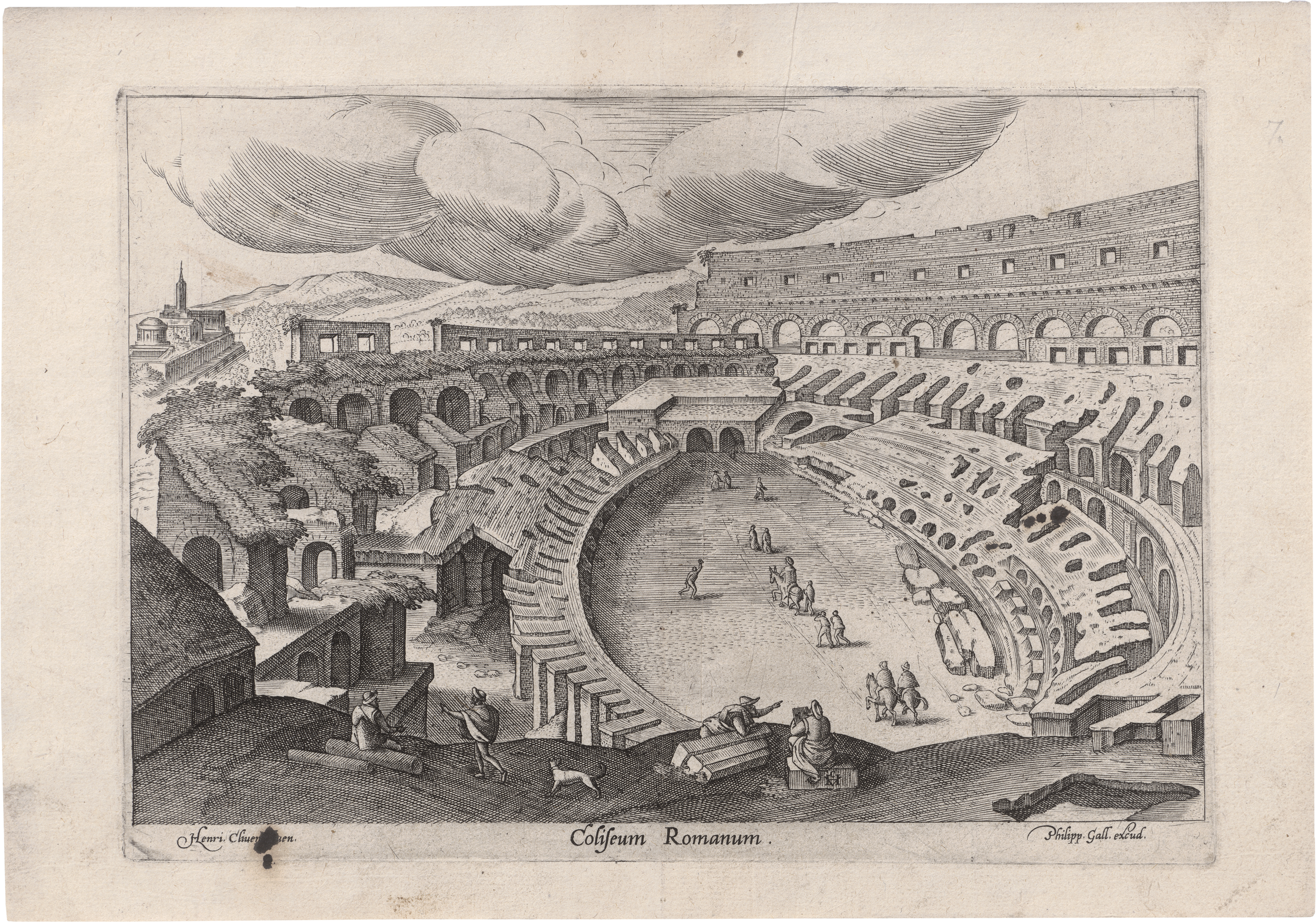 nach. Zehn Ansichten von römischen Ruinen. 10 Kupferstiche. Je ca. 17,3 x 24,4 cm. Hollstein 2, 3, 7, 12, 14-16, 20, 53, 24, je I (von II), Seelink/Leesberg (New Hollstein), aus R18 ("Workshop Philips Galle"). Wz. Handschuh.