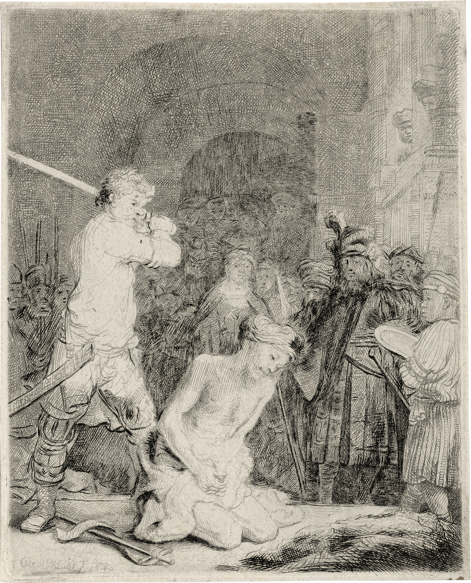 Die Enthauptung Johannes des Täufers. Radierung. 12,8 x 10,4 cm. 1640. B. 92, White/Boon (Hollstein) 92 II, Nowell-Usticke 92 III (von IV), Hinterding/Rutgers (New Hollstein) 183 II (von III).