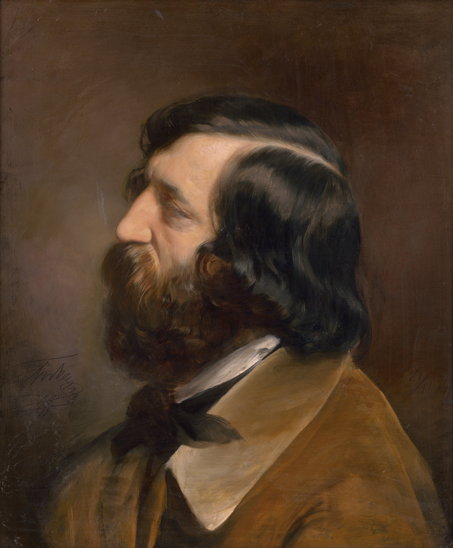 Öl auf Leinwand. 60 x 50,5 cm. Unten links des Dargestellten in die nasse Farbe geritzt "D Tirka" sowie rechts im Hintergrund datiert "21/11 1847".