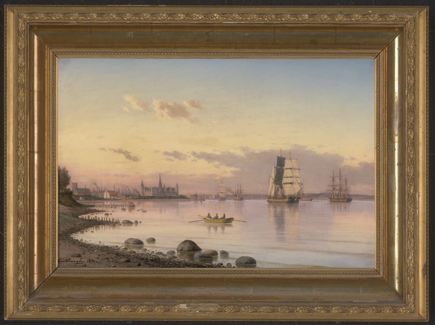 (1829 Kopenhagen - 1902 Snekkersten)Ansicht des Hafens von Helsingør mit Schloss Kronburg