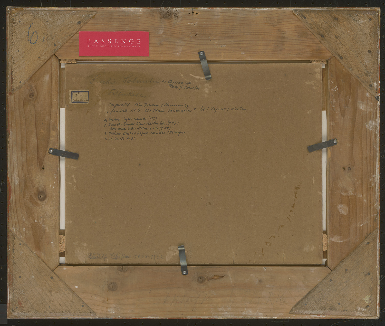 Literatur: Ausst. Kat. Rudolf Schuster, 1848-1902, Sächsischer Kunstverein zu Dresden, Brühlsche Terrasse, 18. Februar - 15. März 1936, Nr. 6.