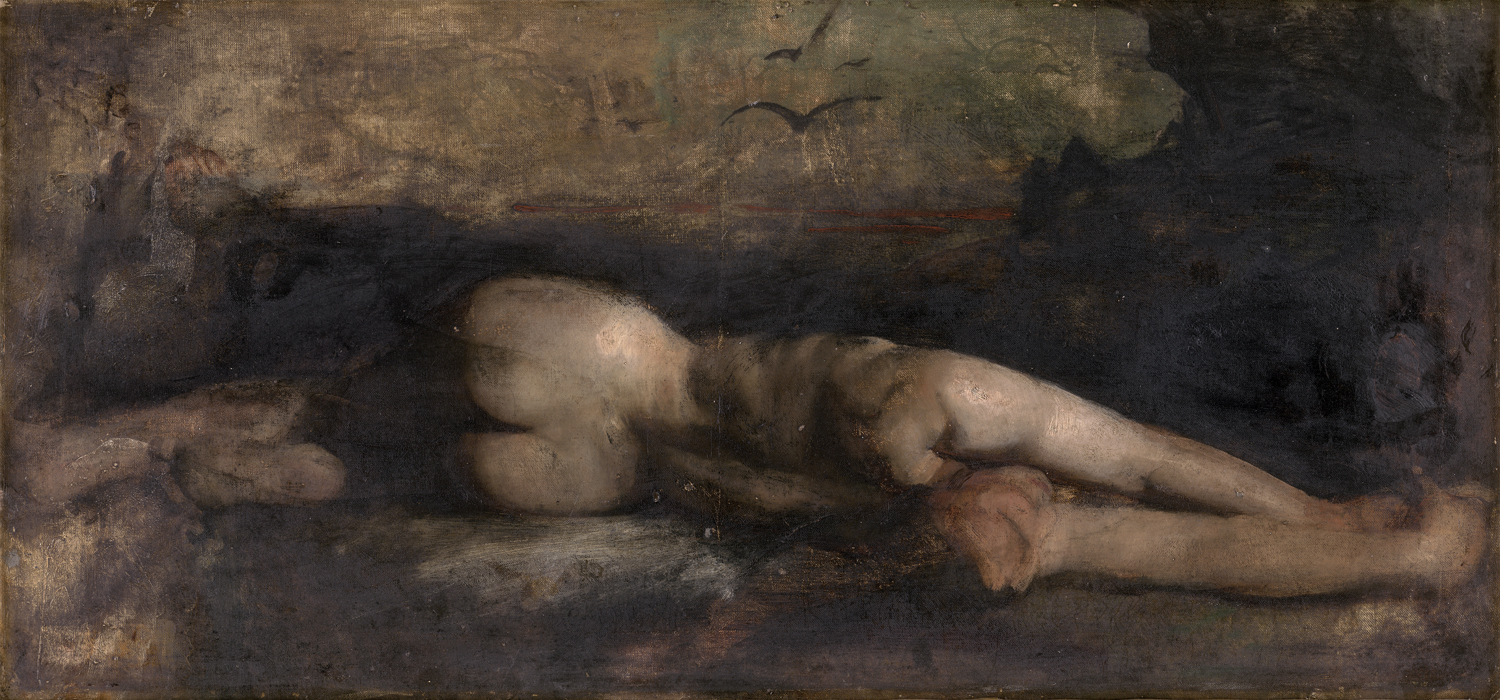 (1860 Temesvár - 1933 Rom)Liegender Akt am Meeresufer