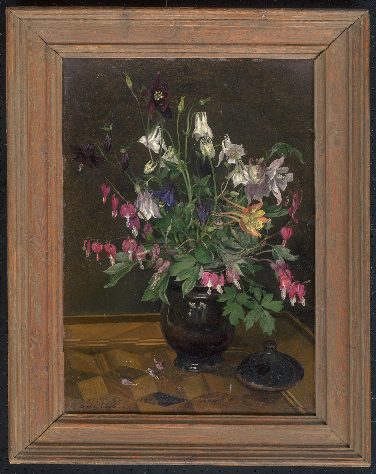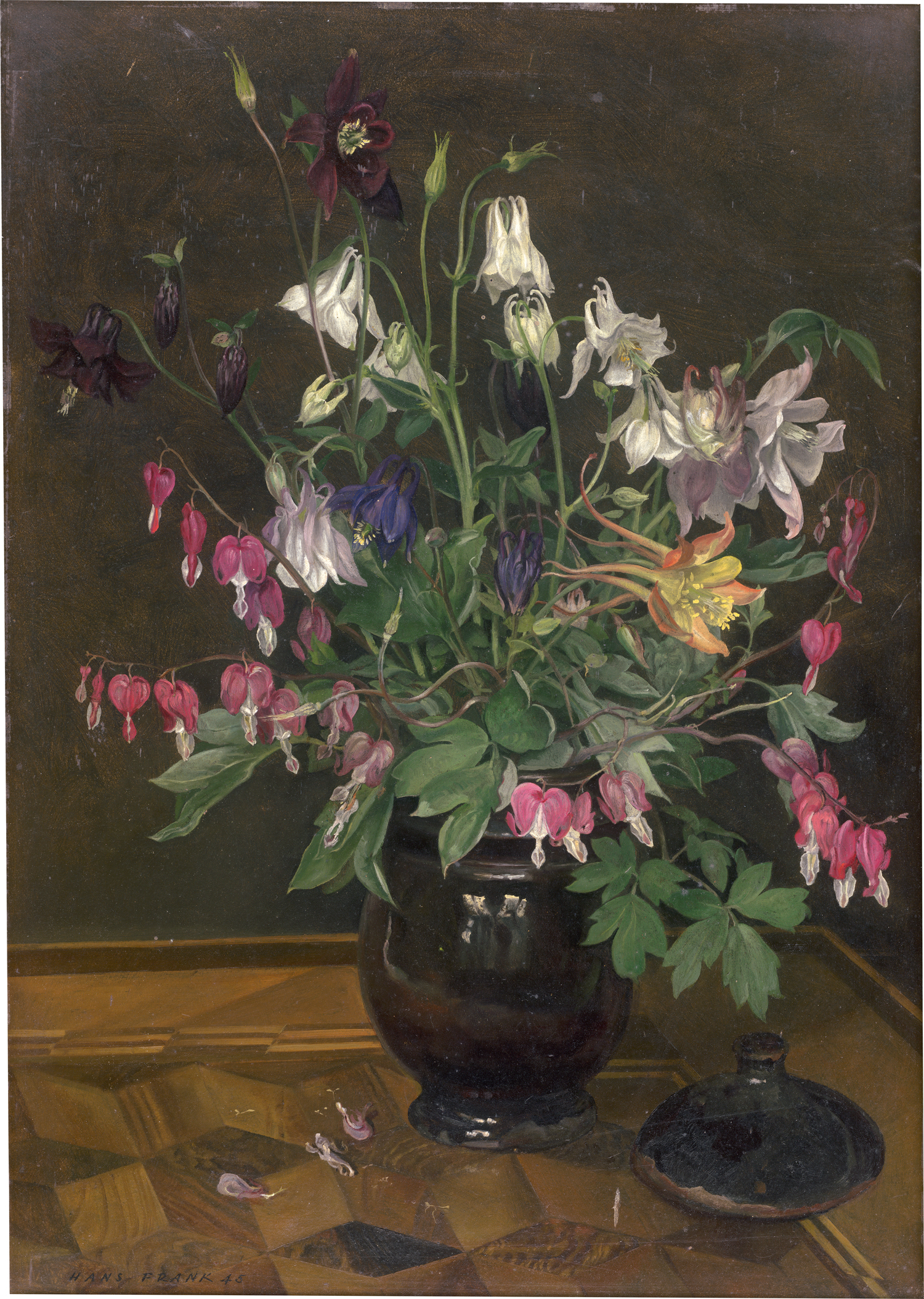 (1884 Wien - 1948 Salzburg)Stilleben mit Akelei, Kapuzinerkresse und tränenden Herzen