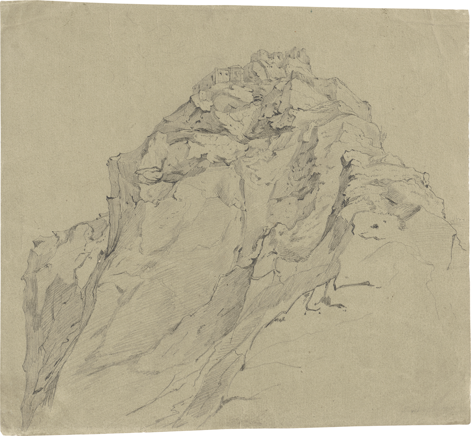 (1778 Kassel - 1868 Rom)Blick auf ein steiles Felsmassiv mit den Ruinen eines Castello, wohl Subiaco