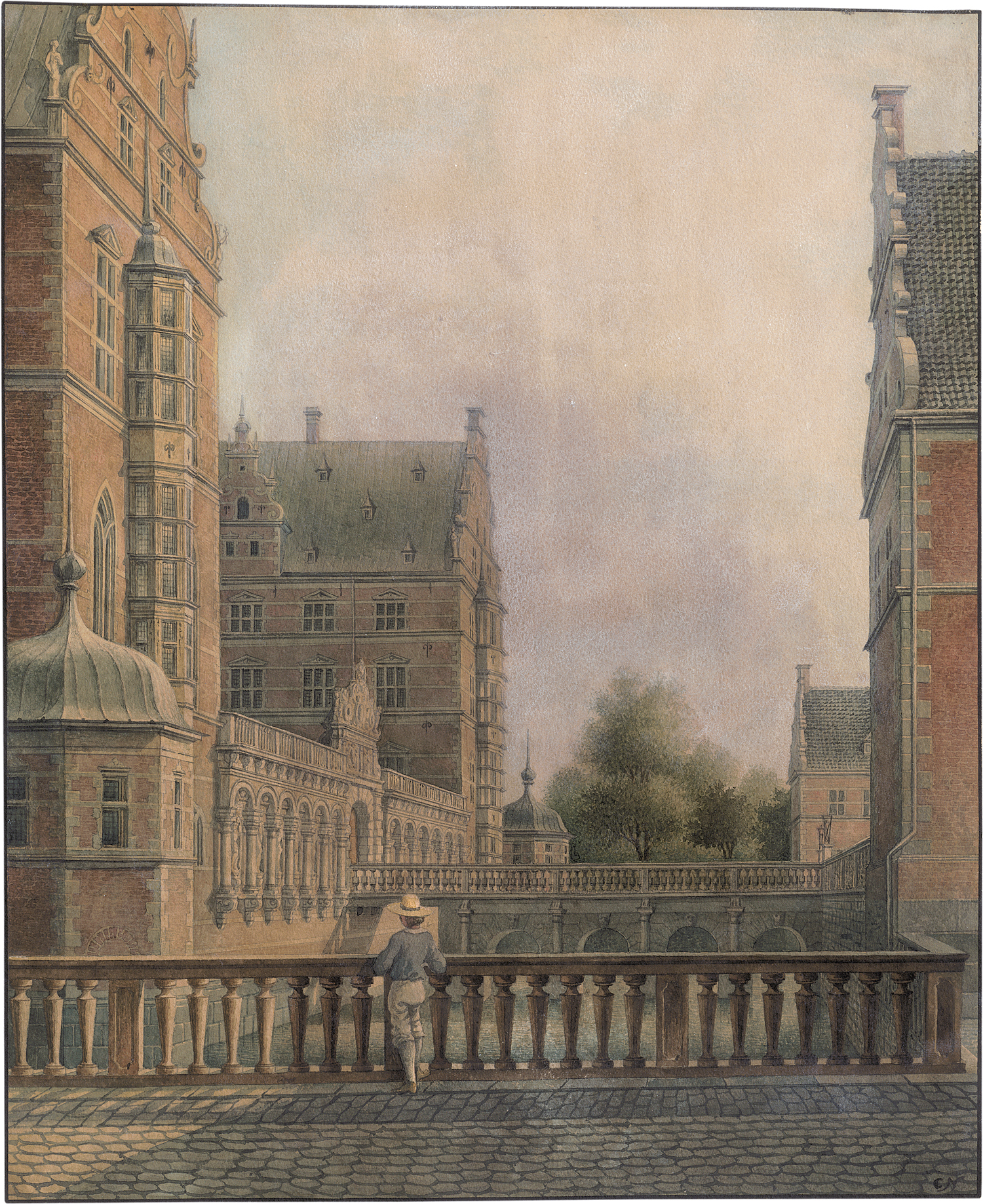 (1833-1910, Kopenhagen)Seitenansicht von Frederiksborg; Blick auf die Marmorbrücke