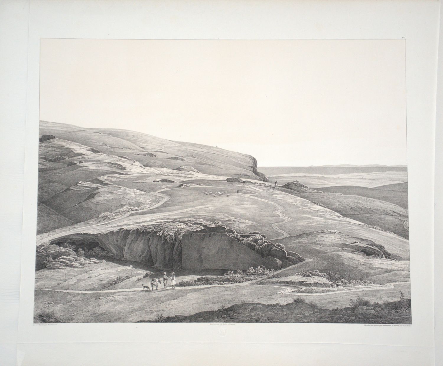 Die Lithographien wurden von Carl August Lebschée (1800-1877) nach Zeichnungen von Stademann ausgeführt. Als Aussichtspunkt wählte Stademann 1835 eine erhabene Felsfläche auf dem Hügel der Nymphen (Lófos Nimfón), neben einem antiken Heiligtum, nach dem der Hügel benannt ist. Wie in einer seiner Vignetten zu sehen ist, saß er während "einer höchst unerträglichen Hitzewelle" auf dem Hügel. Die beigefügte Karte von Athen und seiner Umgebung wurde von Stademanns Schwager J. A. Sommer angefertigt, der auch im selben Jahr ein separates Repertoire analythique et descriptif pour la carte d'Athènes mit einem Ortsverzeichnis der Karte herausgab. – Sämtlich prachtvolle, fein nuancierte Drucke auf dem originalgroßen Bogen. Minimal angestaubt und schwach stockfleckig, in den äußeren Rändern vereinzelt geschlossene und ausgebesserte Randläsuren und Randeinrisse, weitere unbedeutende Alters- und Gebrauchsspuren, sonst in einheitlicher und sehr schöner Erhaltung. Jeweils unten mittig mit dem Trockenstempel "Panorama von Athen mit einer Eule auf einem Zweig". Sehr selten.