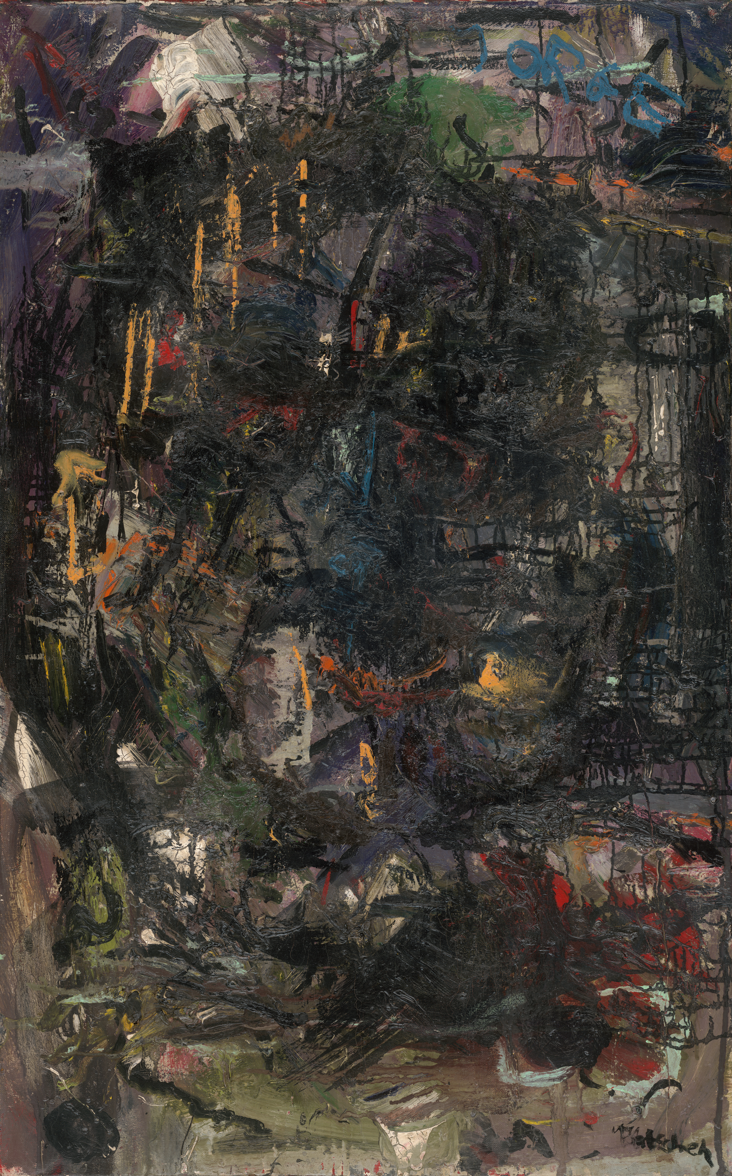 Mit unruhigem, pastosem Duktus modelliert Platschek lebendig differenzierte, vielfach plastisch ausformulierte Strukturen auf dem Malgrund, die er dann mit dem Pinselstiel einritzt, übermalt und gestaltet. Hans Platschek, einer der Protagonisten des Informel, Maler, Kunstkritiker und Schriftsteller, war 1939 mit seinen Eltern nach Uruguay emigriert und hatte dort an der Kunsthochschule von Montevideo studiert. Er entwickelte hier seine abstrakte, frühe Bildsprache mit schwarzen Lineamenten auf malerischem Grund. 1953 kehrte er zurück nach Europa und lebte hier u.a. in Rom, London, München, Paris; hier lernte Platschek Max Ernst, Raoul Hausmann, Tristan Tzara, Hans Arp und Asger Jorn kennen. In der Münchner Galerie van de Loo hatte er 1957 die erste Einzelausstellung. Seine Stilvielfalt sah er selber nur als einen scheinbaren Widerspruch und war wie Francis Picabia der Meinung, ein Künstler müsse Stile durchqueren wie der Nomade Länder und Städte.