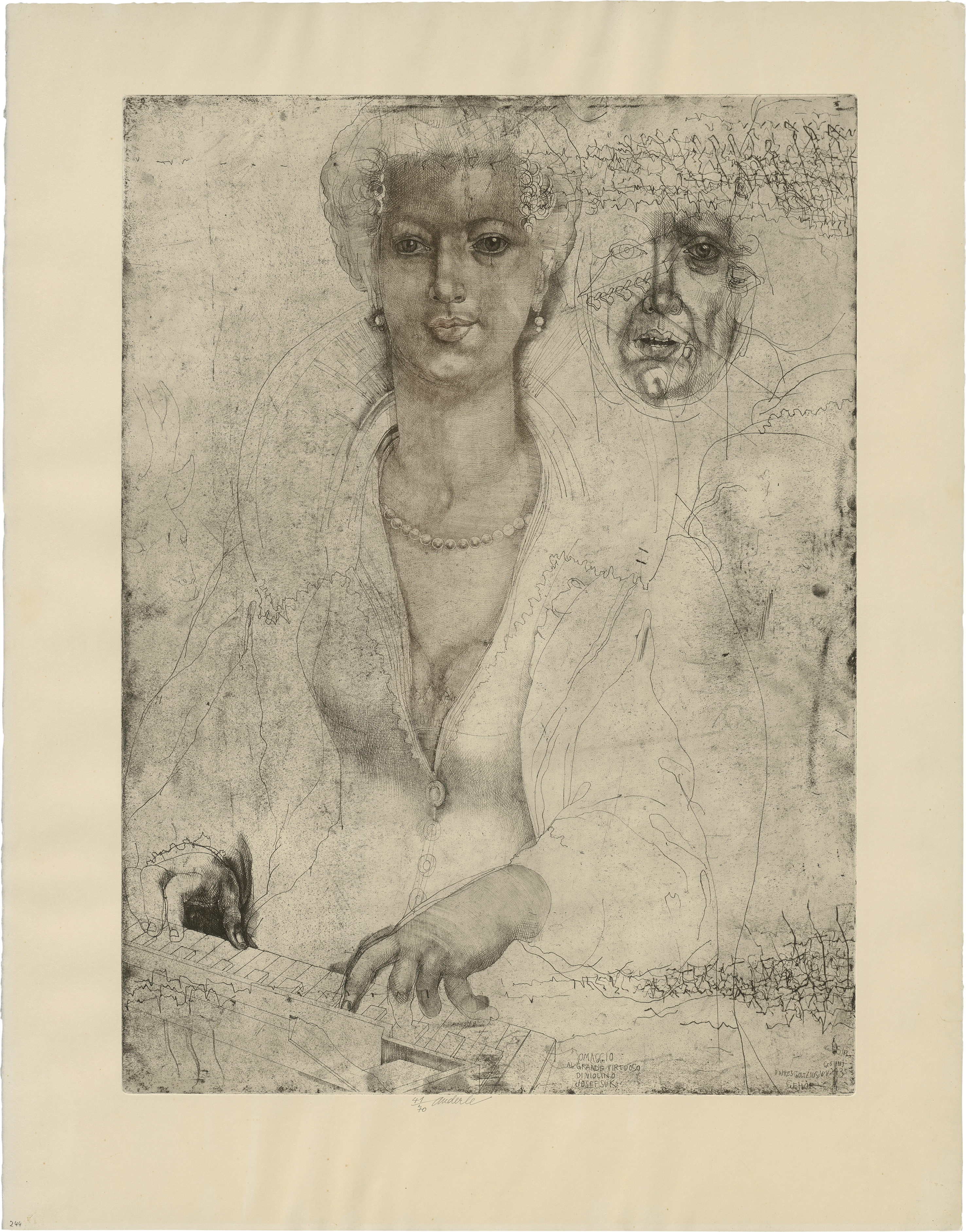 Omaggio al grande virtuoso di violino Josef Suk, aus dem Zyklus “Dialogue with the Great Masters”. Ganz ausgezeichneter, toniger und fein differenzierter Druck mit dem vollen Rand, rechts und links mit dem Schöpfrand.