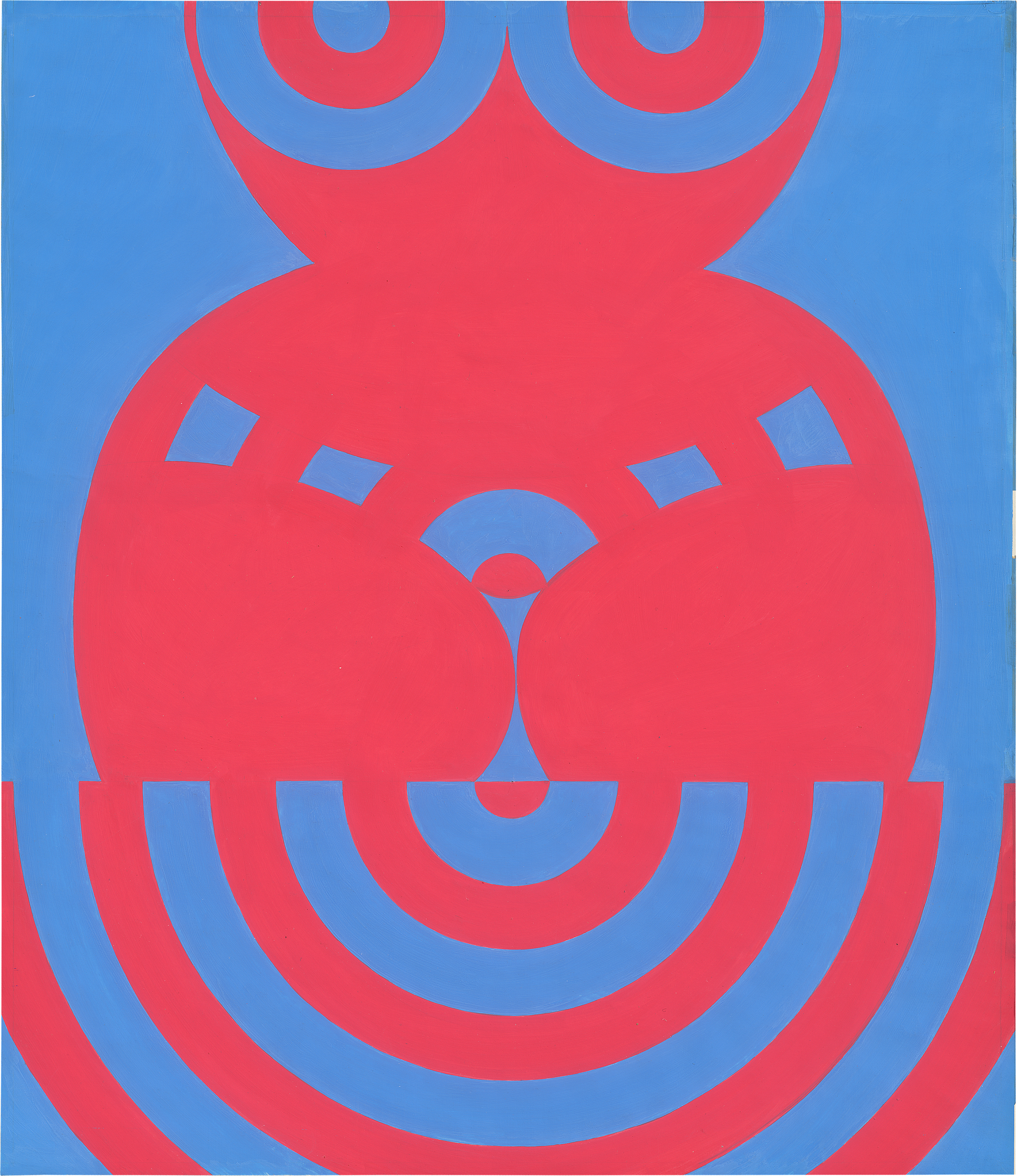 Typisches Werk der deutschen Pop-Art Künstlerin in gedrungenem Hochformat. Plakativ und auf die Farben Rot und Blau reduziert, verfremdet Armbruster den weiblichen Körper in dieser Arbeit in fast orphistischer Manier.
