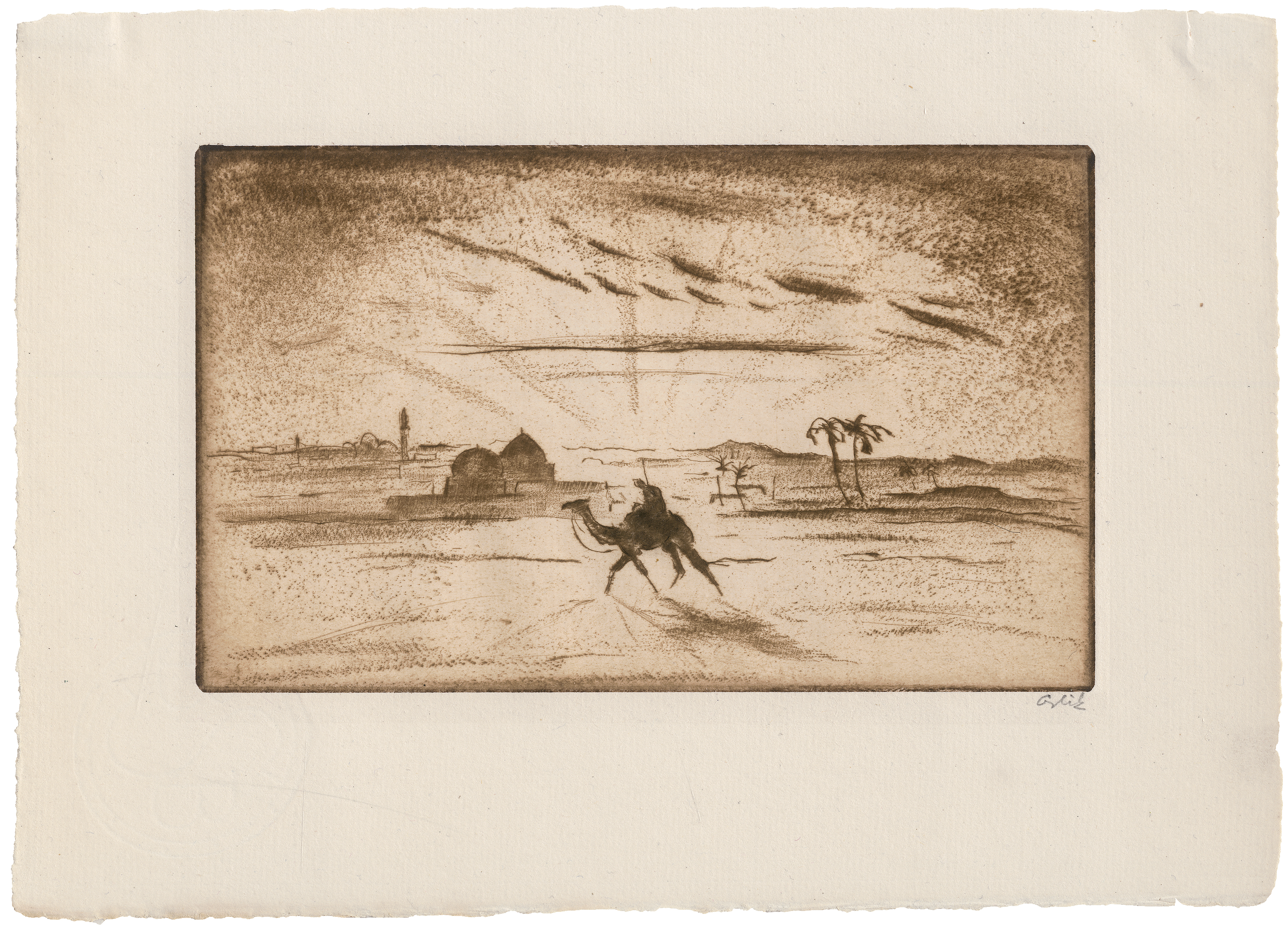 Die komplette Mappe, erschienen in einer Gesamtauflage von 110 Exemplaren im Propyläen-Verlag, Berlin 1922, gedruckt bei Carl Sabo, Berlin. Die Motive für die früher entstandenen Kaltnadelarbeiten fand Orlik bereits 1913 aufgrund seiner Ägyptenreise. Prachtvolle Drucke mit dem vollen Rand.