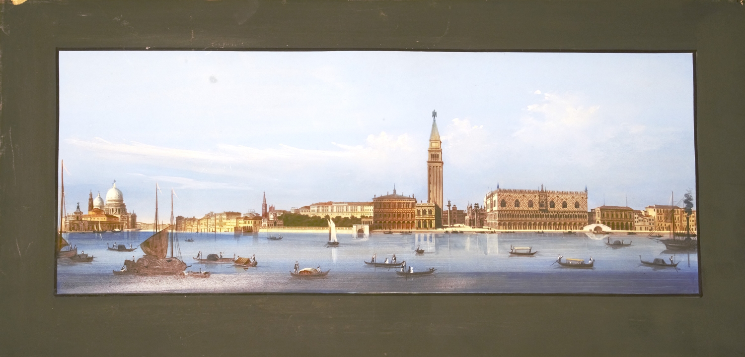 Nicht bei Thieme-Becker. – Schöne Ansichten von Venedig und Mailand, diese doppelt vorhanden, in verschiedenem Kolorit. Mit Darstellungen des charakteristischen Mailänder Doms, Markusturm, Santa Maria della Salute und Dogenpalast. – Breitrandig, verso teils hinterlegt. Schön erhalten.