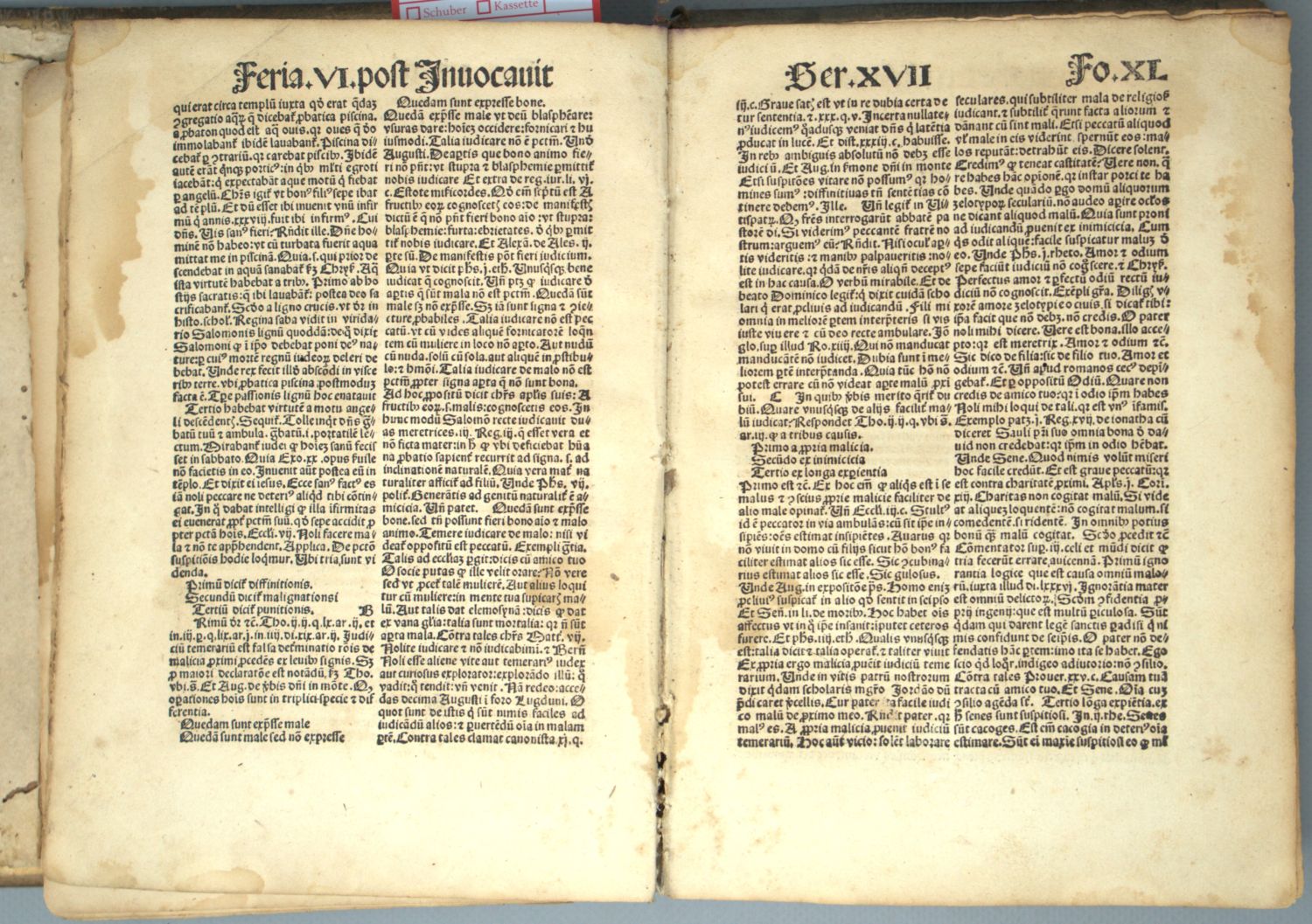 Barletta, Gabriel. Sermones fratris Gabrielis Barelete sacre pagine professoris divi Ordinis fratrum Predicatorum. 21 (von 23) Bl., CXCIX num. Bl. 22 x 15 cm. Blindgeprägtes Schweinsleder d. Z. (stark lädiert, lose, berieben, mit Fehlstellen und ohne die Messingschließen). Augsburg und Hagenau, Rynman und Gran, 1510.