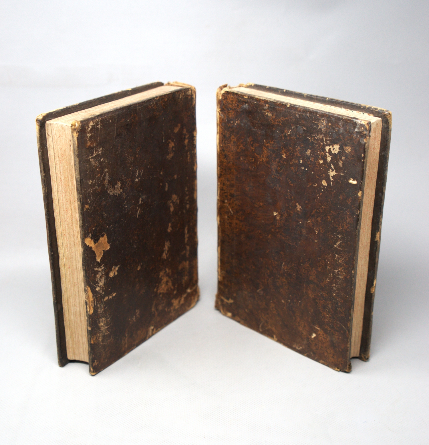 Bilderbibel. Das alte Testament des ewigen Gottes unsers Schöpfers in 91 Kupferbildern vorgestelle. (Und:) Das neue Testament Jesu des Gesalbten unsers Erlösers in 90 Kupferbildern vorgestellet. 2 Bände. 2 Bl. Mit zusammen 181 Kupfertafeln. 23,5 x 17 cm. Lederbände d. Z. (stärker berieben und beschabt sowie mit Wurmspuren) mit goldgeprägten RSchildern und RVergoldung. Wien, J. Adam, um 1810.