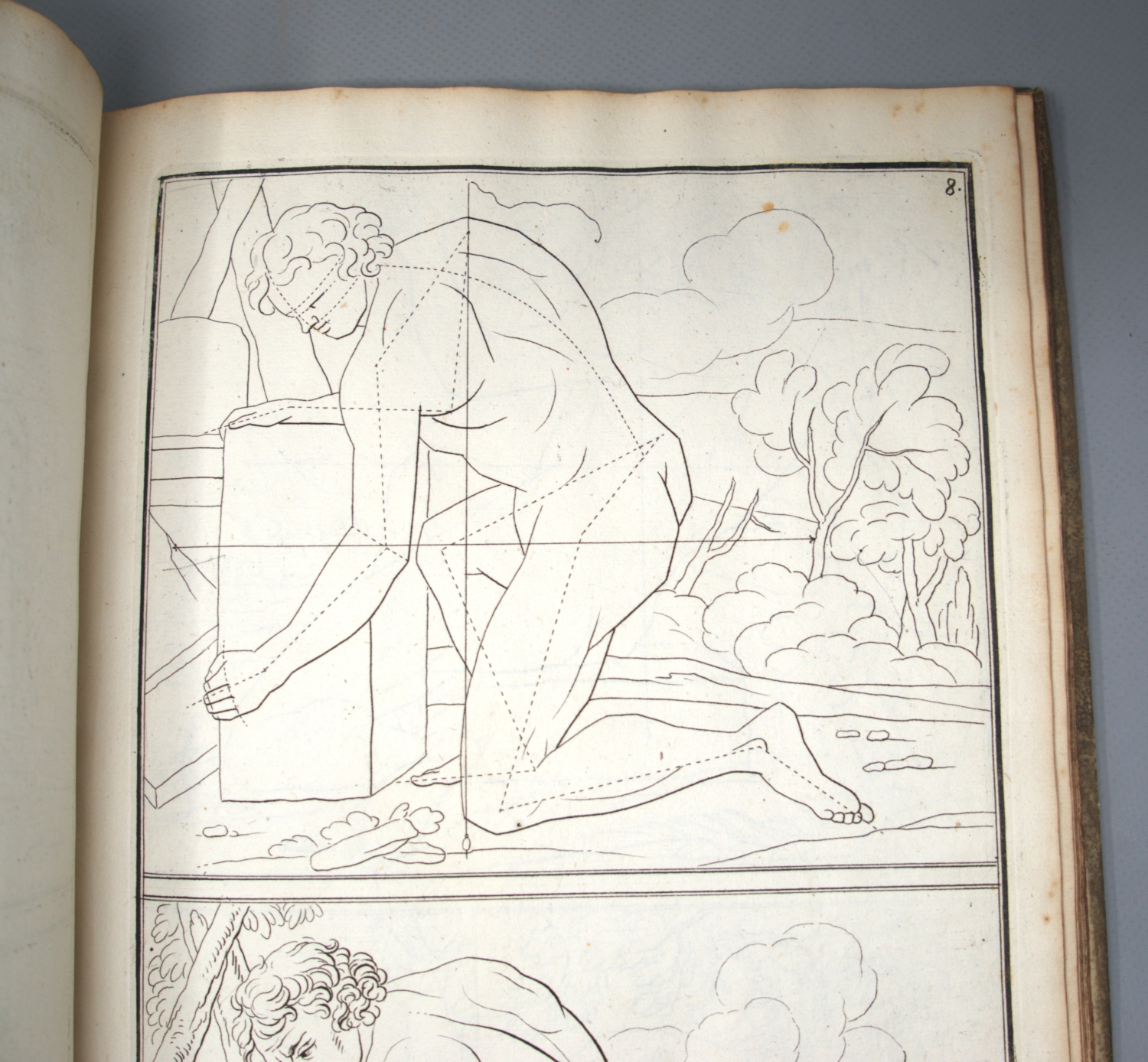 Thieme-Becker XXVII, 373f. Vgl. Berliner Ornamentstichsammlung 4628. – Seltene erste Ausgabe. Lehrbuch für Künstler mit zahlreichen anatomischen Beispieltafeln, in denen die Proportionen des menschlichen Körpers detailliert ausgerechnet und dargestellt werden. Der Autor und Künstler Johann Daniel Preissler (1666-1737) kam aus einer einer böhmischen Glasmacher- und Malerfamilie. Er ging sowohl bei seinem Vater Daniel Preissler als auch bei Johann Murrer in die Lehre und war von 1705 an Direktor der Nürnberger Kunstakademie. – Vorderer und hinterer Innensteg leicht offen. Stock- und fingerfleckig, feuchtrandig und mit kleinen Randeinrissen. – Beigebunden: Carlo Cesi. L'Anatomia dei pittori. Das ist, deutliche Anweisung und gründliche Vorstellung von der Anatomie der Mahler. Andere Auflage. 2 Bl. 16 Kupfertafeln. Nürnberg, Johann Preißler, 1732.