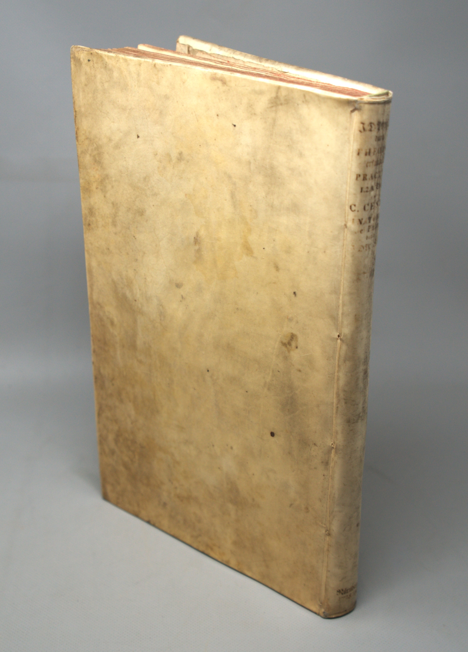 Preissler, Johann Daniel. Die durch Theorie erfundene Practic, oder gründlich-verfasste Reguln deren man sich als Anleitung zu berühmter Künstlere Zeichen-Wercken bestens bedienen kan. Teil I-III in 1 Band. 8 Bl.; 4 Bl.; 4 Bl. Mit gestochenem Frontispiz und 54 Kupfertafeln. 36 x 22 cm. Pergament d. Z. (etwas fleckig, gewellt und mit Kratzspuren) mit RTitel. Nürnberg, Johann Daniel Preissler, 1728-1732.