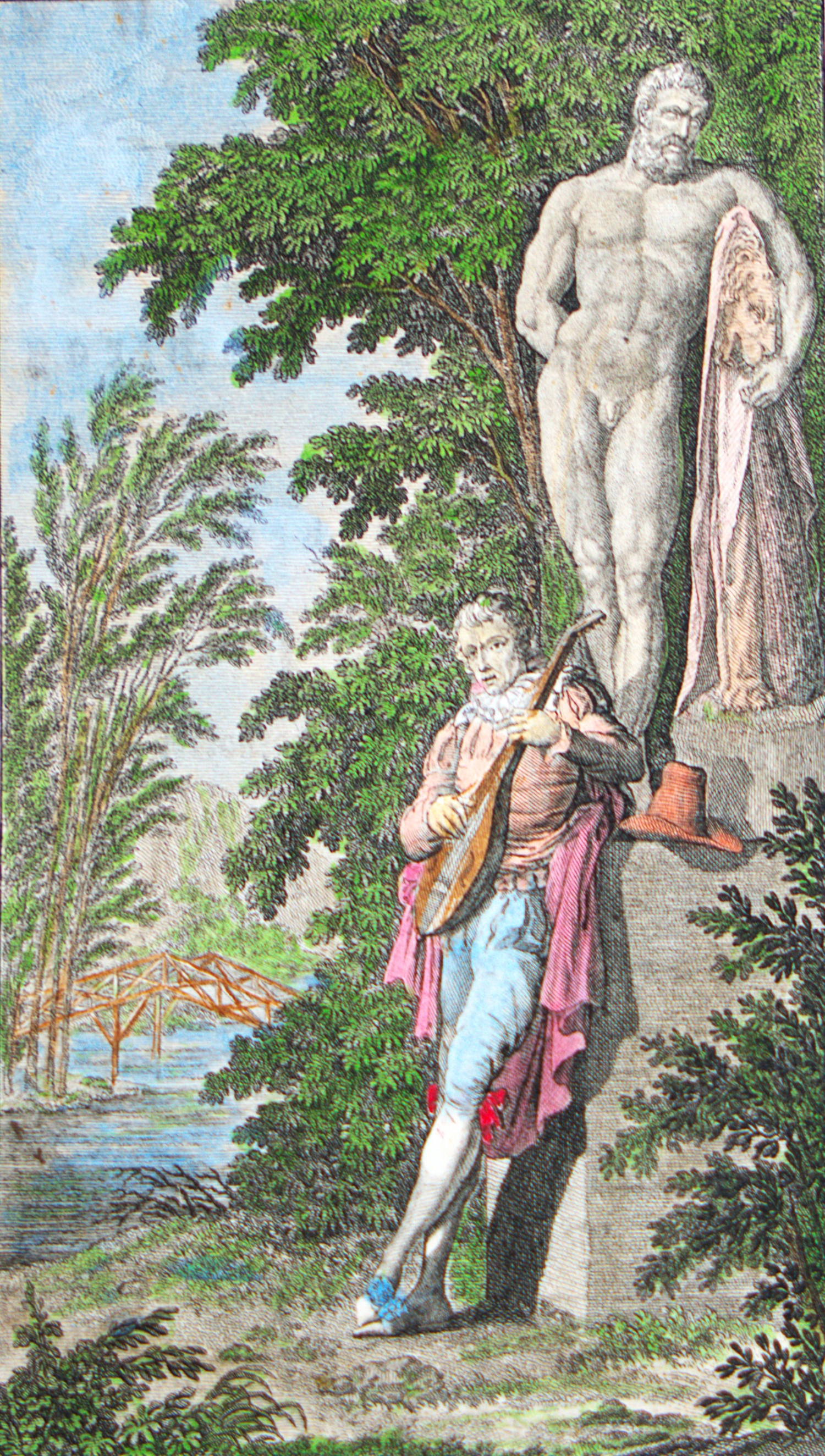 (Cramer, Carl Gottlob). Leben und Meinungen auch seltsamliche Abenteuer Paul Ysops, eines reduzirten Hofnarren. 2 Bände. 3 Bl., X, 392 S.; XVI, 343 S. Mit 2 gestochenen TVignetten und gefalteter Musikbeilage. 15,5 x 9 cm. Pappband d. Z. (berieben, Rückenbezug mit Schabstellen, Ecken leicht bestoßen, mit Resten eines hs. RSchilds). Leipzig, Johann Benjamin Georg Fleischer, 1792-1793.